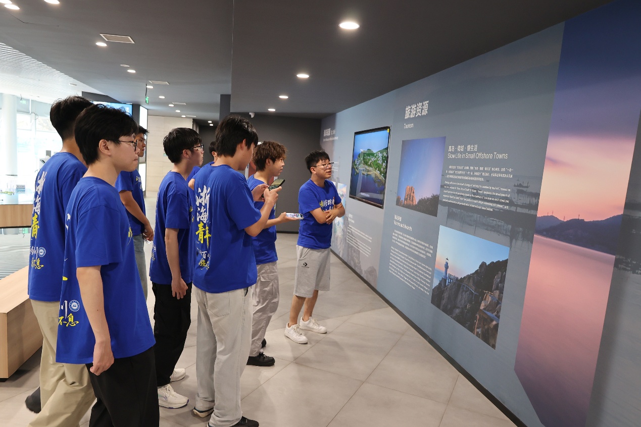 志愿服务队先后赴团嵊泗县委、嵊泗县文广旅体局、嵊山镇人民政府、枸杞乡人民政府等地开展座谈交流与政策调研。团县委副书记傅思佳向队员们详细介绍了团县委在凝聚青年力量、助力地方发展中的具体举措与成效,并就如何进一步加强双方合作交换了意见。县文广旅体局产业发展规划科文化和旅游信息服务中心副主任吴子翰以“三Xian”(仙、鲜、闲)为关键词,向队员们介绍了嵊泗独特的旅游资源禀赋、文旅产业发展现状及未来规划。嵊山镇经济贸易与文化旅游发展办公室副主任、团委副书记陈子宁向队员们介绍了嵊山镇围绕“渔情·渔乐·渔业”特色,打造“百年渔场 魅力嵊山”主题IP,建设“渔旅休闲岛”的发展定位。枸杞乡团委书记、平安法治和应急管理办公室(应急消防管理站)干部金麟带领队员们实地参观海上牧场、乡村数智生活馆,进一步了解了枸杞乡围绕“蓝海牧岛 自在枸杞”主题IP,打造景色绮丽、产业兴旺“贻贝产业岛”的生动实践。