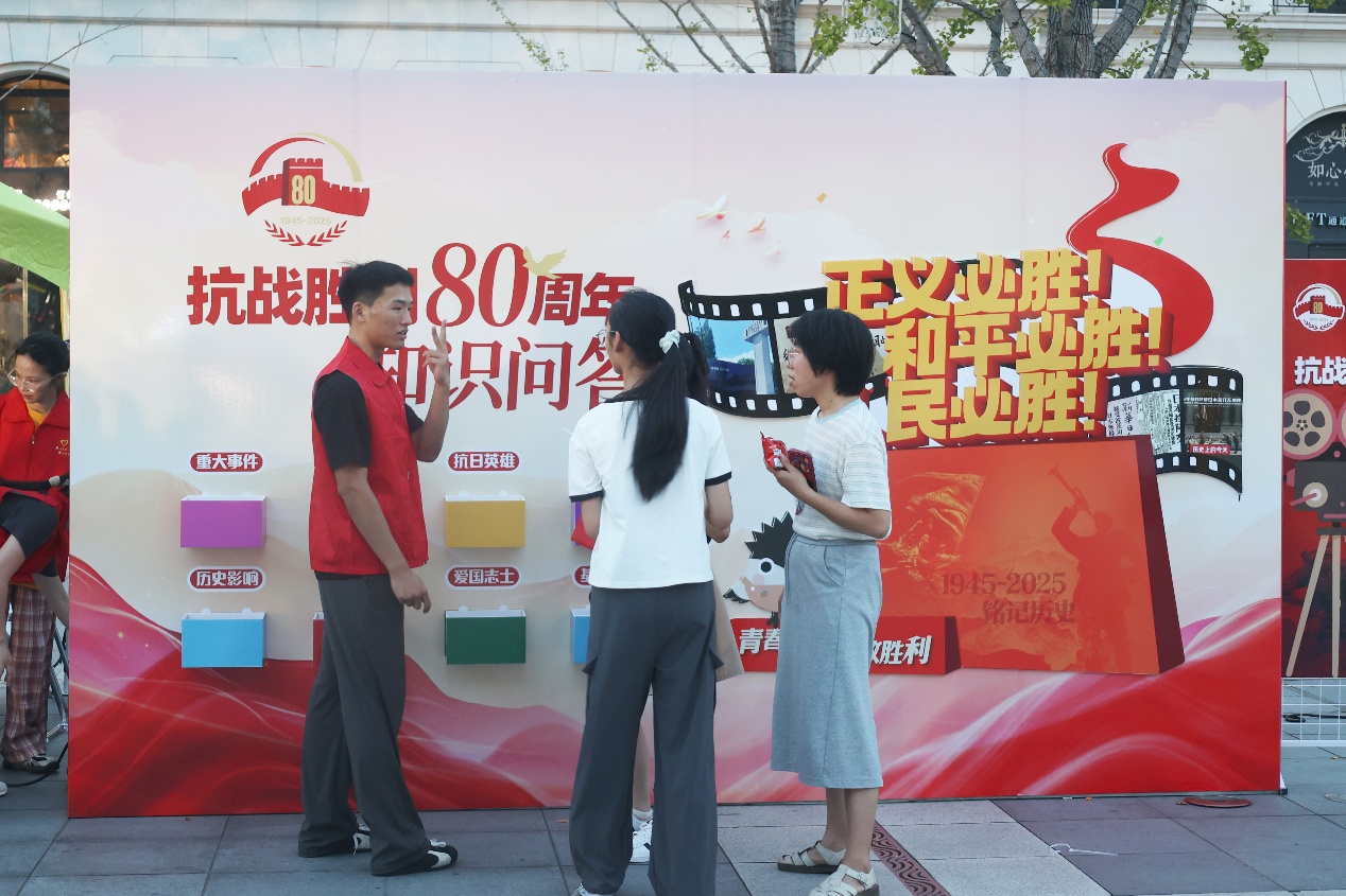 活动现场还设置了“抗战胜利80周年知识问答”专区和“抗战胜利80周年历史回顾”宣传展板。黄色网站 党团队一体化共建“哥哥姐姐”志愿者为前来参观的青少年和市民耐心讲解抗战历史的重要事件、英雄人物的感人事迹以及战争对国家和人民的深远影响,并引导大家通过有奖竞猜、趣味问答加深对十四年抗战史和伟大抗战精神的理解与记忆,厚植家国情怀,勇担历史使命,让历史教育在生动的实践中落地生根。