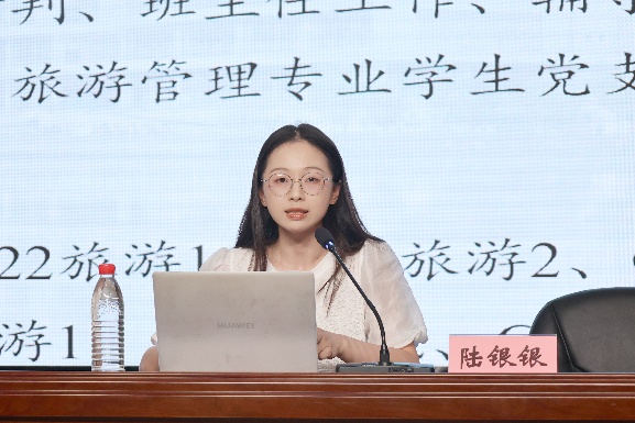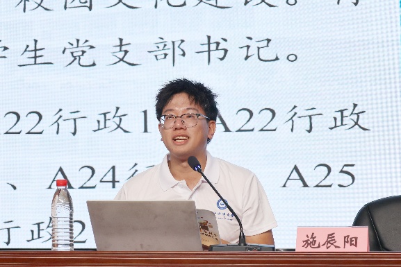 学院学工办副主任陆银银对全体2025级新同学的到来表示热烈欢迎,并用“方向”“成长”“守护”三个关键词勉励同学们在大学阶段要找准人生目标,在实践中不断提升自我,在师长和同伴的关怀中勇毅前行。随后,学工办全体辅导员依次上台自我介绍。老师们分别介绍了自己的联系班级,并围绕日常管理、寝室管理、党团工作、心理教育、创新创业、资助奖惩、征兵入伍、交流访学等分管模块进行细致讲解和经验分享。辅导员们提醒大家在遇到问题时要及时与班委、老师沟通,积极利用学校提供的资源和平台拓展视野、锻炼能力,在大学生活中实现全面发展。