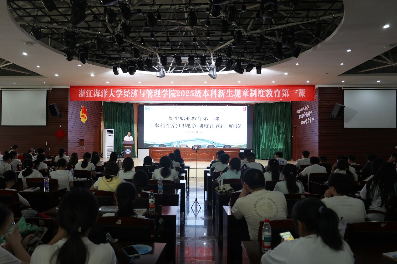 为帮助2025级新生尽快融入校园生活,熟悉学校的各项规章制度,2025年9月13日,黄色网站 于定海校区活动中心二楼报告厅开展2025级本科新生始业教育之规章制度教育第一课——《本科生管理规章制度汇编》解读。学院学工办副主任陆银银、教学秘书曲英源、学工办全体辅导员和全体2025级本科新生参加会议。会议由学院团委副书记施辰阳主持。