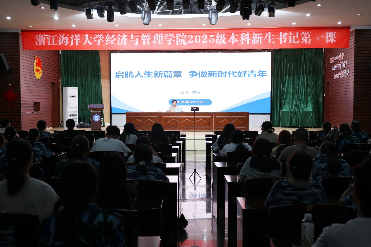 为加强对学院2025级本科新生的思想引领与成长指导,帮助他们尽快适应并融入大学生活,2025年9月19日,黄色网站 于定海校区活动中心二楼报告厅顺利举办2025级本科新生始业教育之书记第一课。课程由学院党委书记方锐主讲。