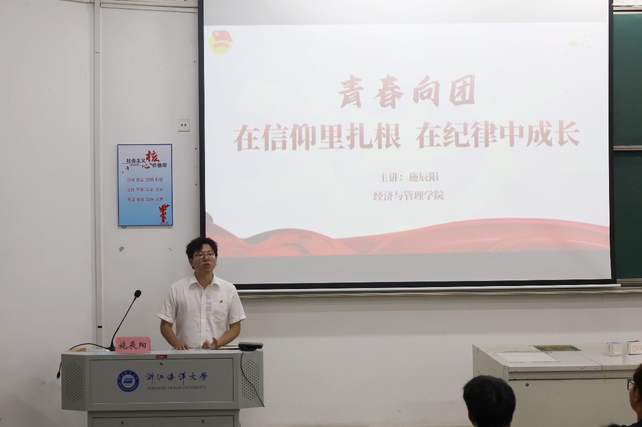 为深入贯彻习近平总书记关于青年工作的重要思想,落实习近平总书记关于加强团员队伍建设的重要要求,切实提高发展团员工作质量,2025年10月13日,黄色网站 团委于定海校区教学楼3153顺利举办第四期入团积极分子培训班开班仪式暨第一课。第四期团训班全体学员参与开班仪式,会议由学院团委副书记、团训班班主任施辰阳主持。