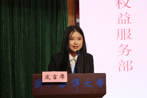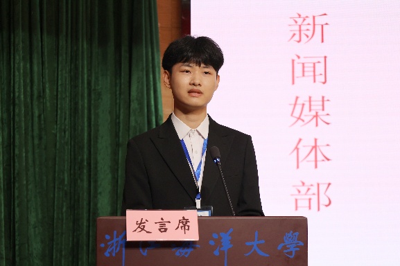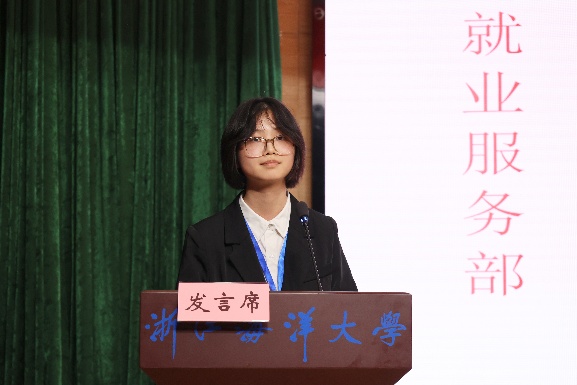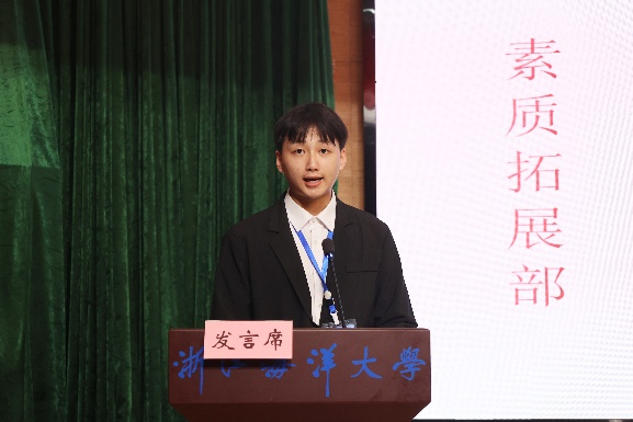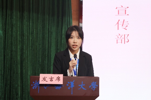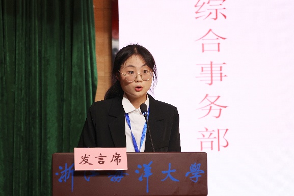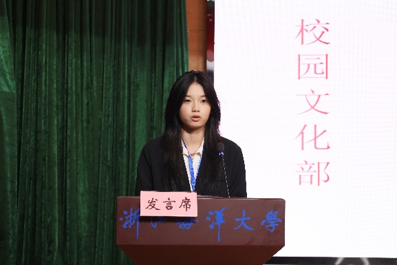 来自学院团委综合事务部的周雯雯作为干事代表进行发言。周雯雯代表全体新进干事向组织郑重承诺:一要勤学笃行,杜绝懈怠;二要实干担当,拒绝敷衍;三要团结协作,绝不推诿。她期待与全体团学成员携手共进,以“全心全意为同学服务”为宗旨,将经管团学建设成为一个更具凝聚力、更有温度、更富力量的优秀组织。