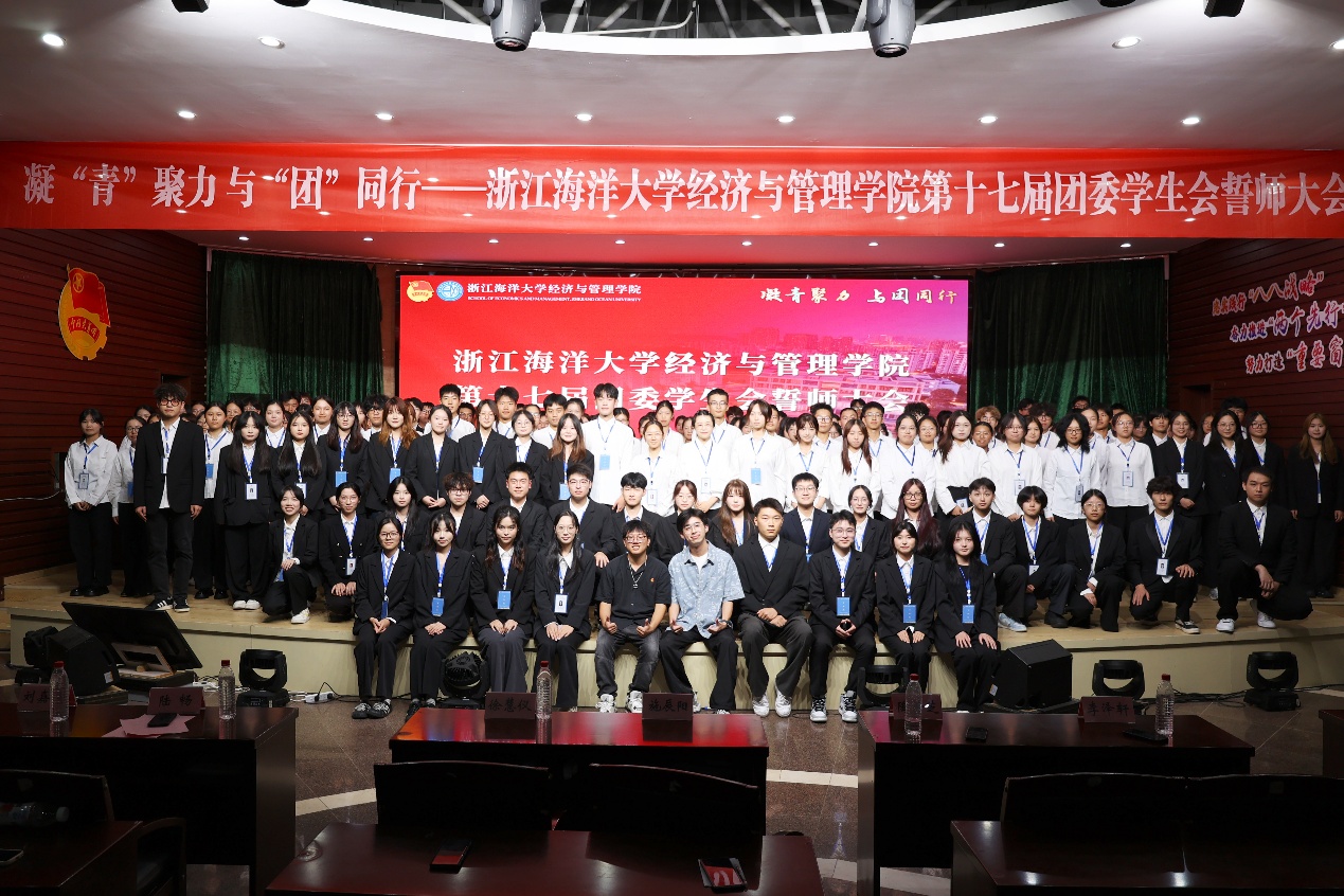 为充分发挥团学组织的引领力、组织力、服务力,引领学院新一届团学团队开拓创新、锐意进取、担当实干,2025年10月14日,“凝‘青’聚力 与‘团’同行”黄色网站 第十七届团委学生会誓师大会于定海校区活动中心二楼报告厅顺利召开。学院党委副书记、纪委书记陶芳芝,团委副书记施辰阳,学工办辅导员李泽轩和第十七届团委学生会全体成员出席本次会议。