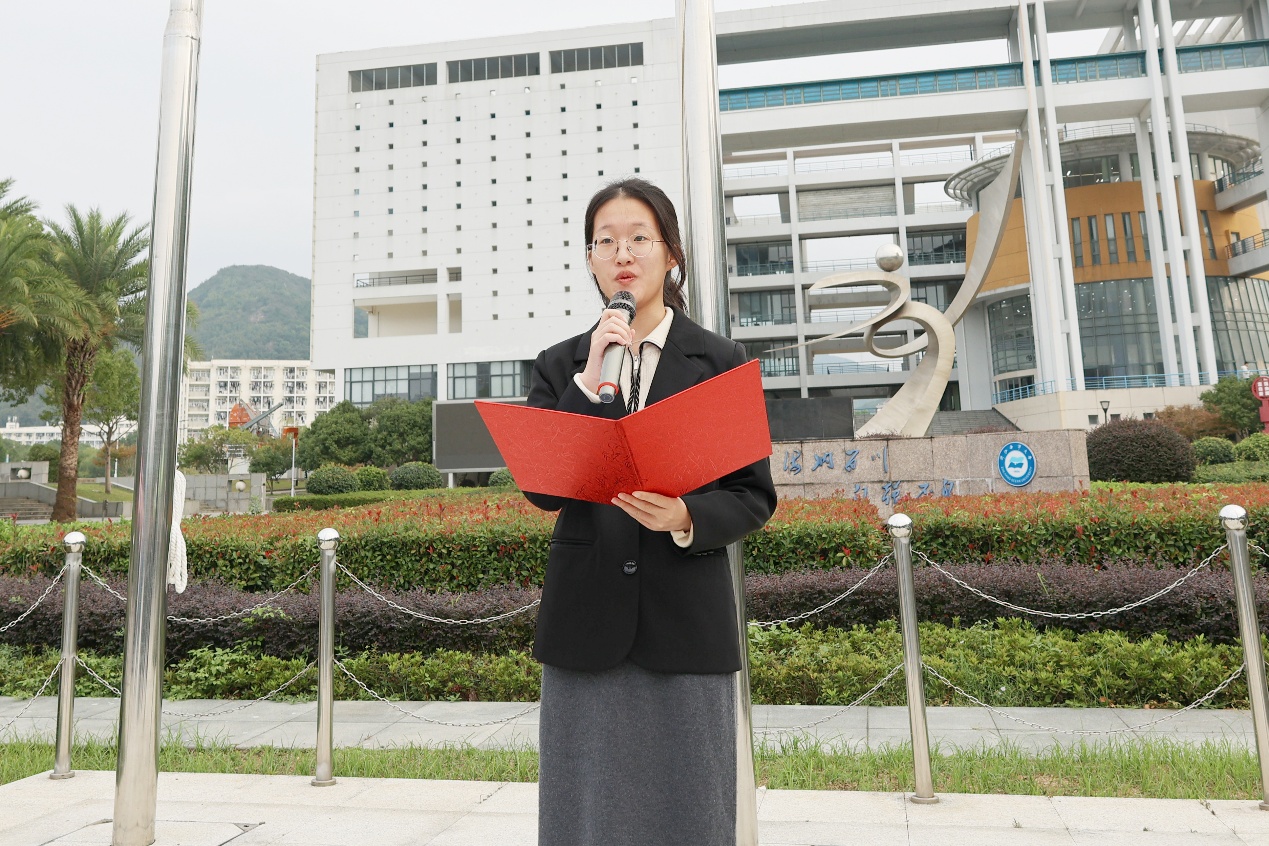 学院团委志愿实践部副部长张思彤作为定海校区学生代表开展国旗下宣讲。她以《“船”承大爱,命运与共》为主题,通过介绍三艘特殊的船:“开天辟地”的领航之舟、“承载大义”的民心之舟、“命运与共”的文明之舟,引导同学们深刻领悟红船精神所蕴含的“首创、奋斗与奉献”精神。她号召大家在学习中勇于创新,在实践中甘于奉献,在奋斗中砥砺前行,将红船精神融入日常学习生活中,让理想信念之舟在新时代的浩瀚海洋中乘风破浪、行稳致远。