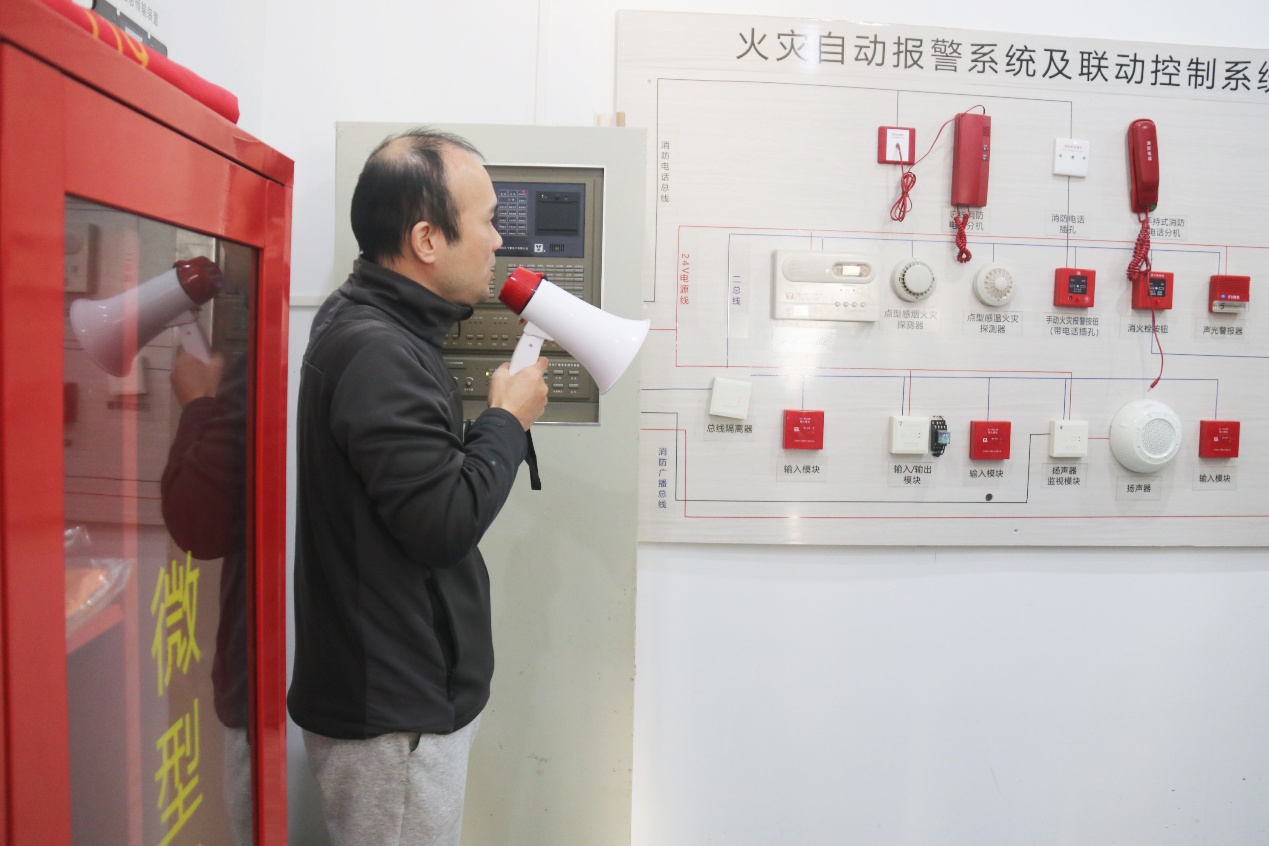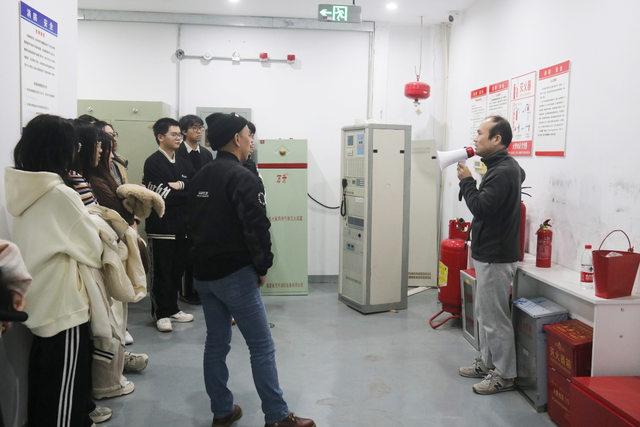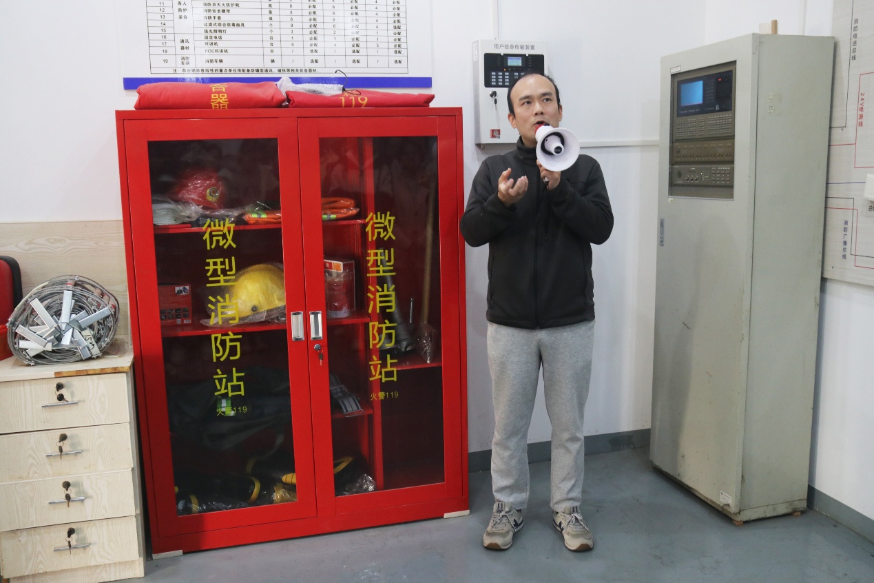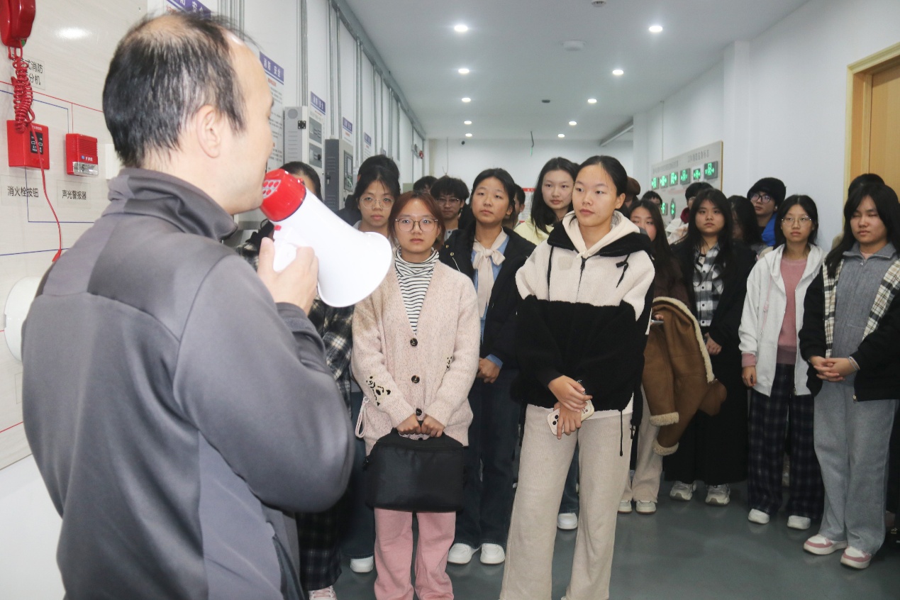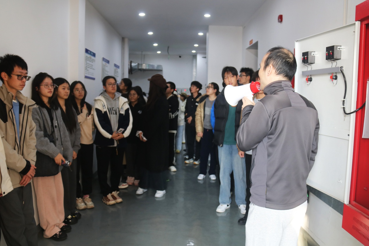 许磊老师向师生们系统讲解了微型消防站的装备功能与火灾预警机制。他详细说明了防火服的阻燃隔热性能、消防靴的防刺防滑特性,并通过实物演示对比了感温探测器与感烟探测器在不同场景下的应用差异。结合近年高校实验室、居民楼火灾案例,以及因初期未及时处置而造成精密仪器损毁、人员伤亡的实例,他强调初期火灾发现的重要性,生动印证了“早发现、早处置”在降低火灾损失中的关键作用。同时,他还介绍了消防专用电话可同时接听多路分机的特点,突出其在火场信息实时传递中的重要意义。