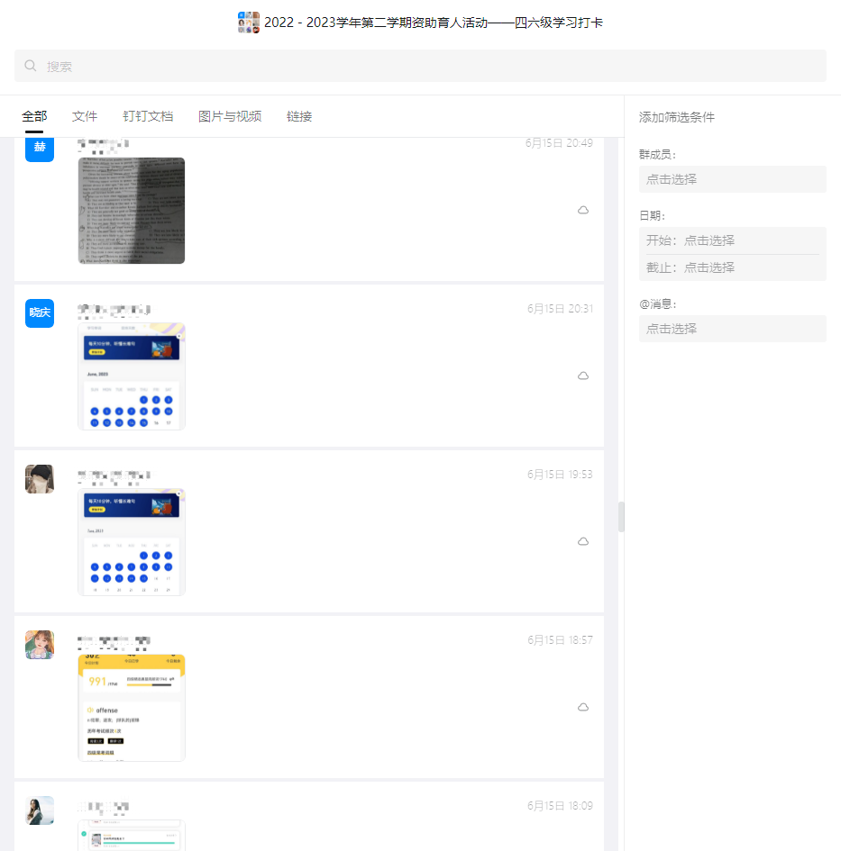 此次活动受到了学院资助对象的大力支持,同学们积极报名参与,根据个人自身情况合理规划英语四六级备战计划,坚持每日常态化学习。同学们通过每天自觉单词学习打卡、高级词句背诵、刷题练习分享和群内互动交流等方式,互相监督,互相勉励,互相帮助,保持学习热情,提升学习效率,积极发扬自立自强、团结协作、奋发学习、坚持不懈、立志成长成才的优秀品质,充分体现了学院资助育人工作中“扶困”与“扶智”,“扶困”与“扶志”相结合。