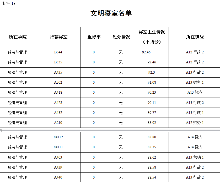 此次文明寝室评选结果予以公示。