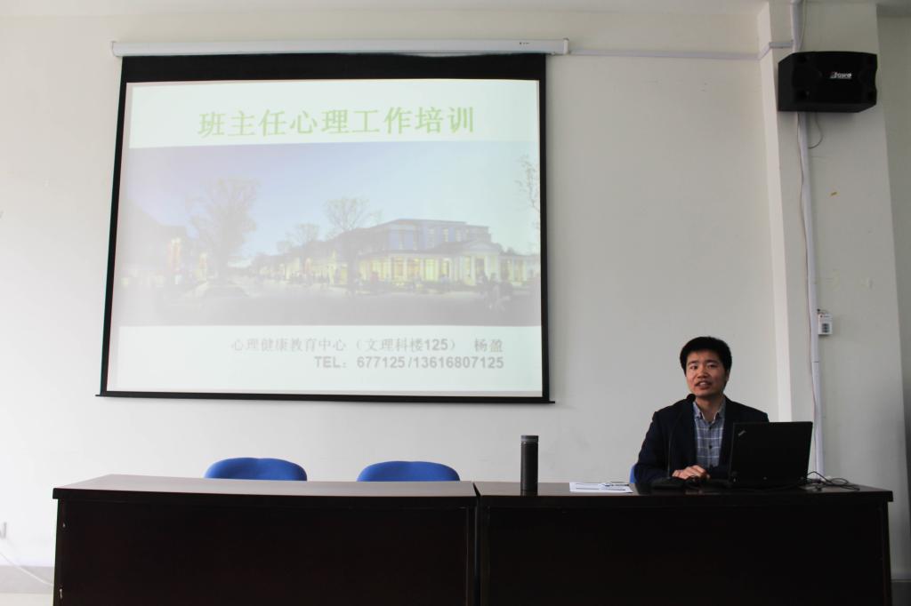 3月29日下午,校心理中心杨盈老师到黄色网站 指导班主任心理工作,在文理楼101会议室开展了一场生动的培训讲座,学院副书记应军、全体辅导员、班主任老师、以及主要心理工作学生干部参加了培训。