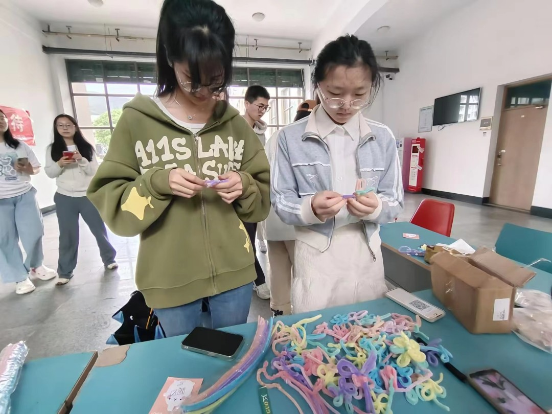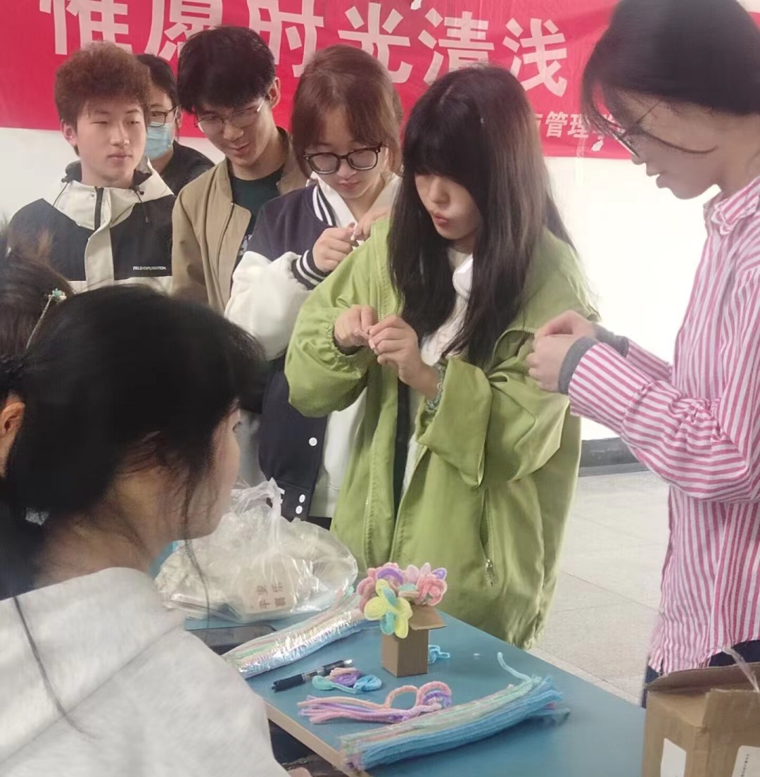 在“结花献母亲”的过程中,同学们相继用扭扭棒扭成一束花。在扭的过程中,同学们将满满的爱意注入花中,将花与祝福遥寄给母亲,祝愿母亲青春常在,每一天的生活都宛如盛开的鲜花一般明媚耀眼。
