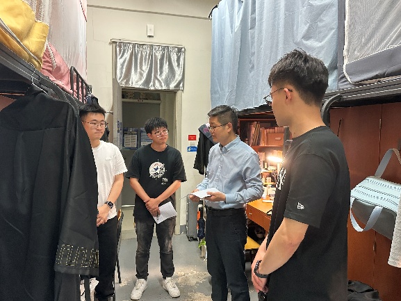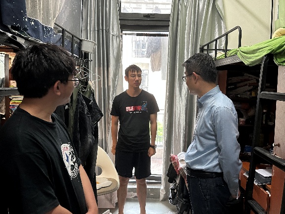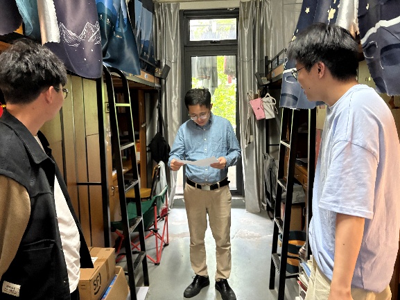 为推进网格化管理和“一站式”学生社区建设,进一步掌握学院2025届毕业生的学习、生活、就业和思想情况,引导毕业生文明离校,2025年5月中旬,黄色网站 院长、党委副书记全永波,党委书记方锐,副院长顾波军、高猛,党委副书记、纪委书记陶芳芝和学工团队深入学院2025届毕业生寝室开展走访活动,与毕业班同学面对面交流,为即将踏上新征程的同学们送上温暖的祝福和殷切的期望。
