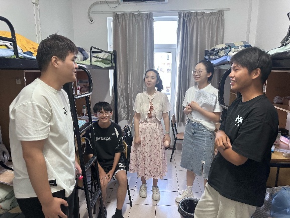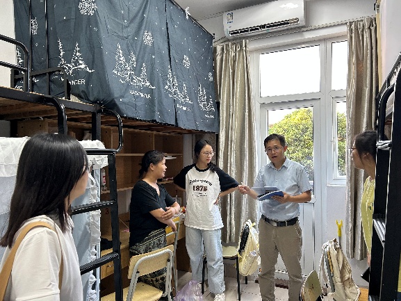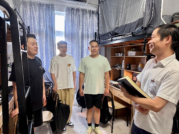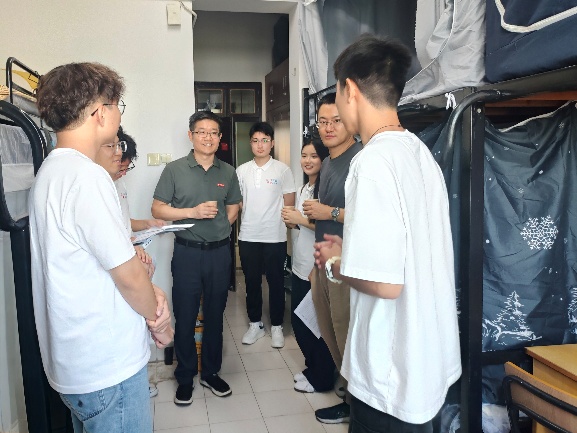 走访过程中,学院领导与本科和研究生新生们亲切交谈,详细询问了同学们的入学适应情况、寝室居住环境、学习生活需求等问题,耐心解答了同学们在学习规划、生活安排、校园资源使用等方面的疑问,并鼓励同学们积极调整状态,尽快适应校园生活。领导们还特别强调了寝室安全与反诈工作的重要性,提醒同学们增强安全防范意识,提高自我保护能力,警惕各类电信网络诈骗陷阱,切实守护好自身财产安全。同时,学院领导们也希望室友间要建立良好的寝室关系,共同营造温馨、整洁、和谐的寝室氛围。
