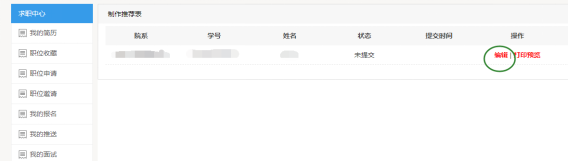 打开黄色网站 就业信息网页面(网址://jy.hseweb8.com/),选择“学生登陆”,在“就业手续”中选择“就业推荐表”,点击“编辑”进行填写,填写完成后,可选择“暂存”,检查信息无误后,点击“保存并送审”,填写完成后可以选择“打印预览”查看(此时不能打印),联系学院就业辅导员进行审核。