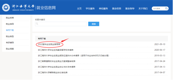 打开黄色网站 就业信息网页面(网址://jy.hseweb8.com/),点击“常用下载”,选择“2022届毕业生就业推荐表”下载填写。由学院审核盖章后,交由学校就业指导中心审核盖章。
