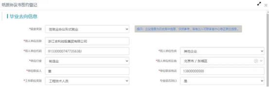 签约单位为国有企业类型,单位性质选择“国有企业”。