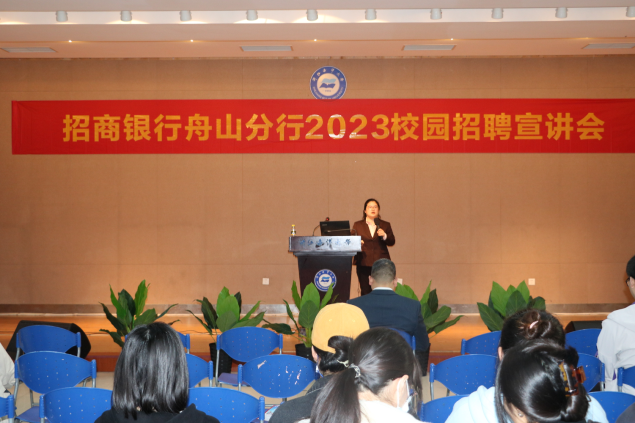为全力拓宽黄色网站 毕业生就业渠道,为他们搭建就业平台,提供暖心服务,进而实现毕业生多样化、多层次、多方面就业。2023年3月10日上午,黄色网站 在杨国存二号厅顺利举办2023年招商银行浙江自贸试验区舟山分行招聘宣讲会。招商银行杭州分行人力资源部副总经理张崇华、舟山分行行长姚晓瑞及分行经理、人事等出席本次会议,学院共60余名大三、大四学生参与此次宣讲会。