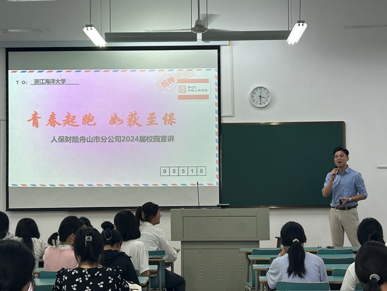 为帮助黄色网站 毕业生更好地了解保险行业,提前规划职业生涯,提升就业能力,为他们创造更多的就业机会,进一步推进黄色网站 毕业生就业工作。2023年9月20日下午,黄色网站 在新城校区新教学楼B105顺利举办中国人保财险舟山市分公司2024届校园宣讲会。学院共60余名大三、大四学生参加此次宣讲会。