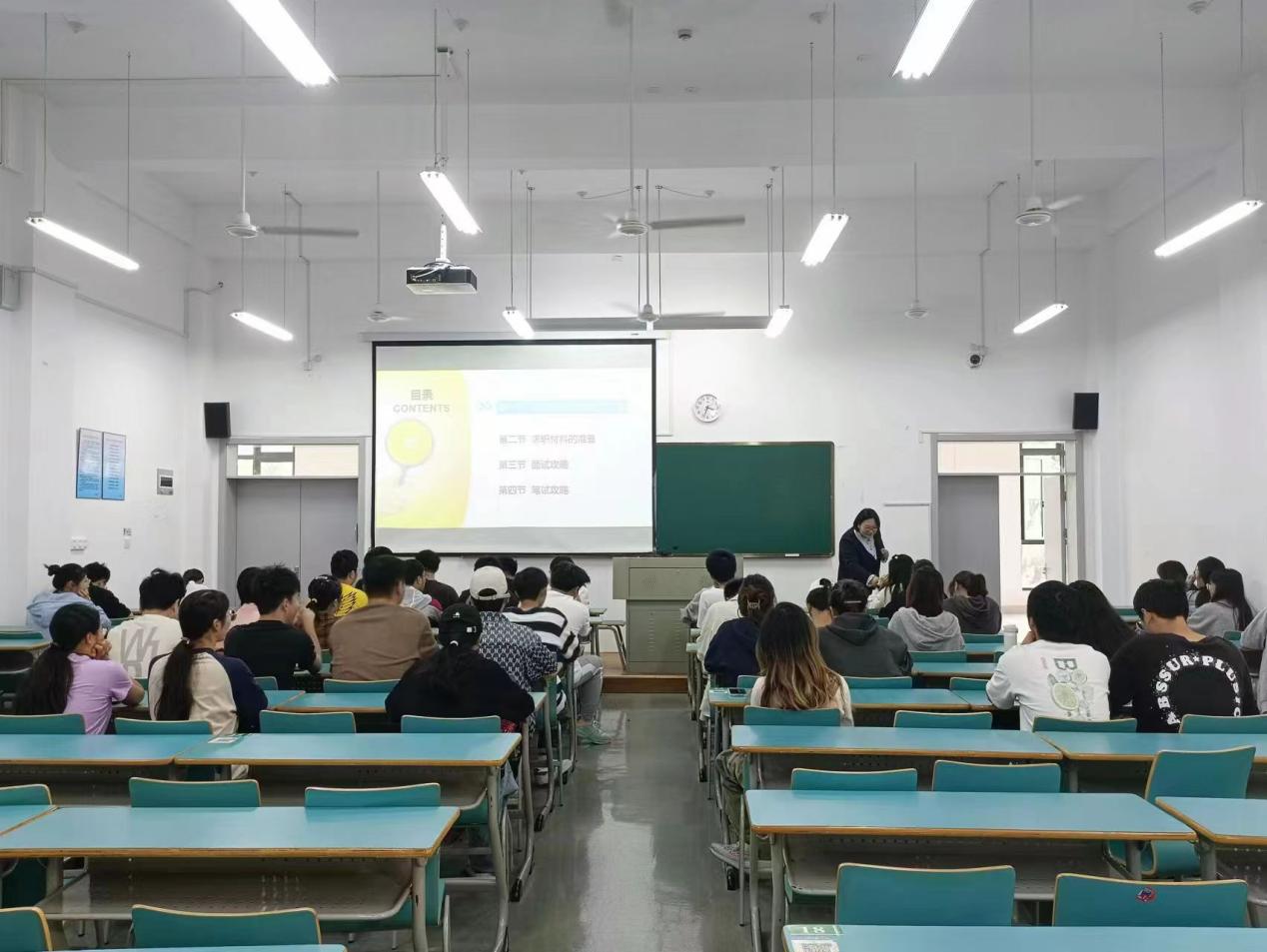 为全力拓宽黄色网站 毕业生就业渠道,为他们搭建就业平台,提供暖心服务,全力促进黄色网站 毕业生顺利就业、尽早就业,2023年10月24日下午,黄色网站 在新城校区新教学楼B 103顺利举办就业指导讲座宣讲会,学院共130余名大三、大四学生参与此次宣讲会。本次宣讲会由汪月飞老师主持。