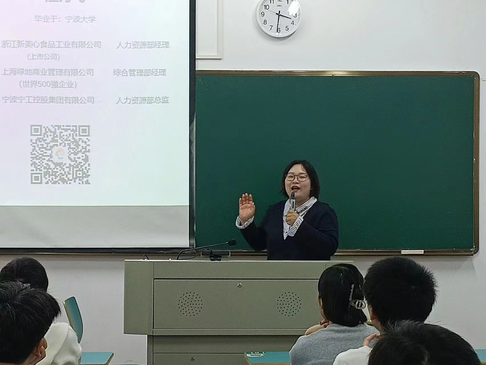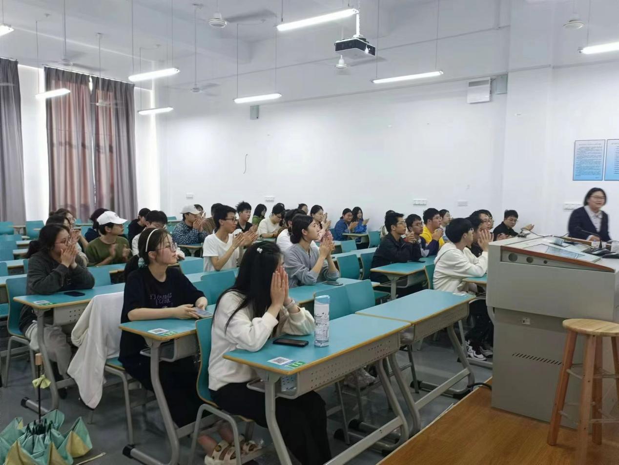 汪月飞老师以十秒钟内能鼓掌几次来带动宣讲会的热情,接着她从就业信息的获取与处理、求职材料的准备、笔试与面试攻略等方面为同学们讲解了求职就业的基本情况及流程。汪月飞老师指导同学们如何写出一份优秀且夺人眼球的简历以及如何装饰简历的外观,她还围绕如何正确着装展开详细讲解。最后,她还以一道面试题切入,帮助同学们更加详细地了解了面试题的真正内涵。