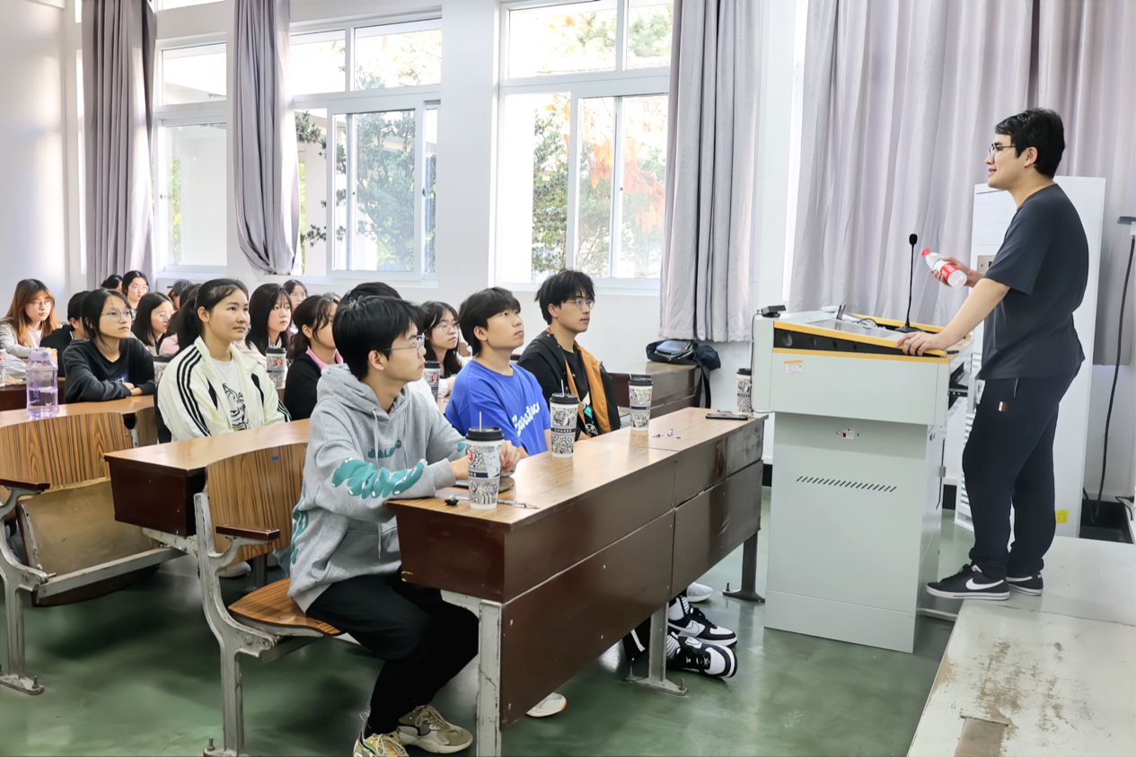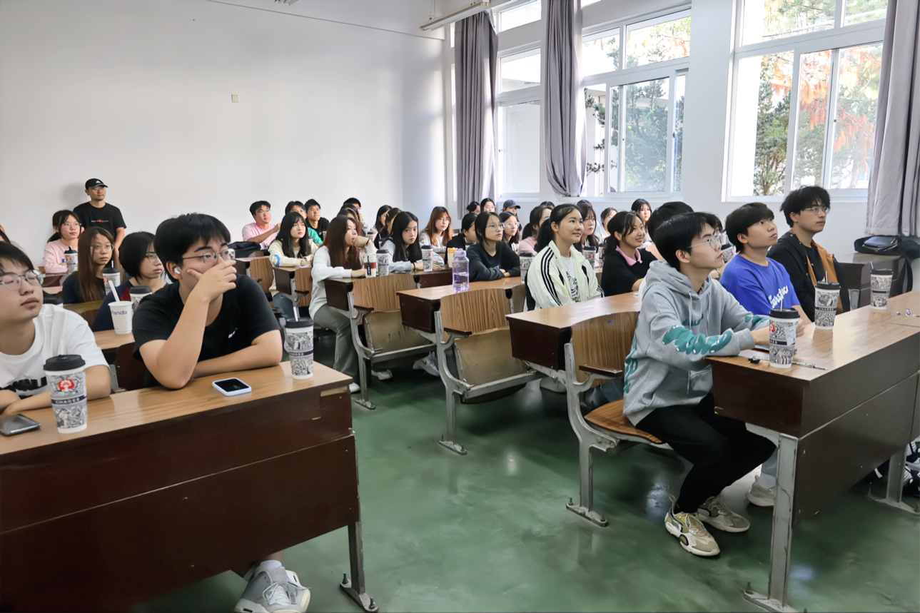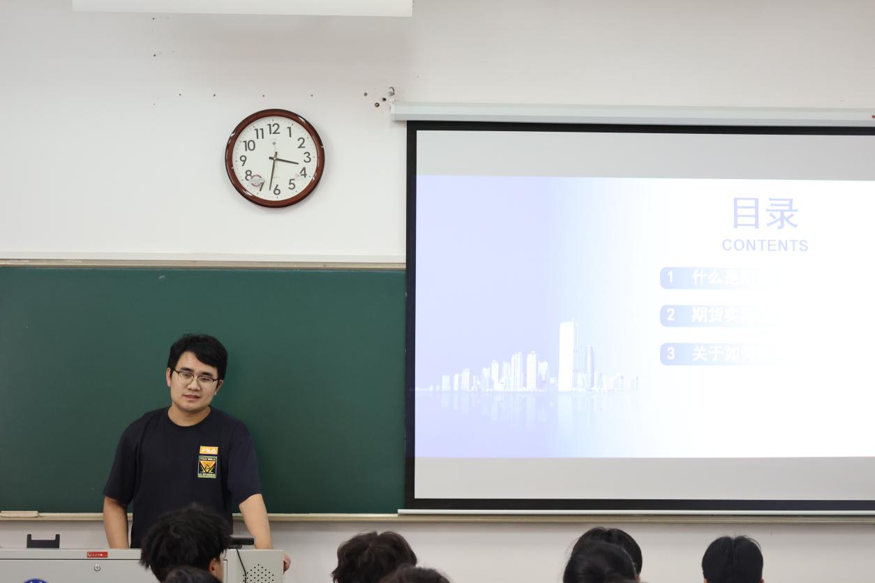 金辉老师以《期货基础知识、实际应用及服务实体经济》为宣讲主题,首先通过现货交易与期货的对比、保证金制度、交割制度等引出期货主题,同时着重细致地向同学们介绍了期货的基本用途及功能发挥,包括套期保值、价格发现、市场供求和价格的稳定、节约交易成本、服务实体经济等内容。他还以“青山镍”等热门事件举例,通俗易懂地向同学们传递了期货交易的风险与交易并存性。最后,金老师向同学们介绍了期货研究的相关知识,包括结合行业市场、市场风格、市场热点等因素进行相关的宏观研究、标的物研究、技术分析等,让黄色网站 同学受益匪浅。