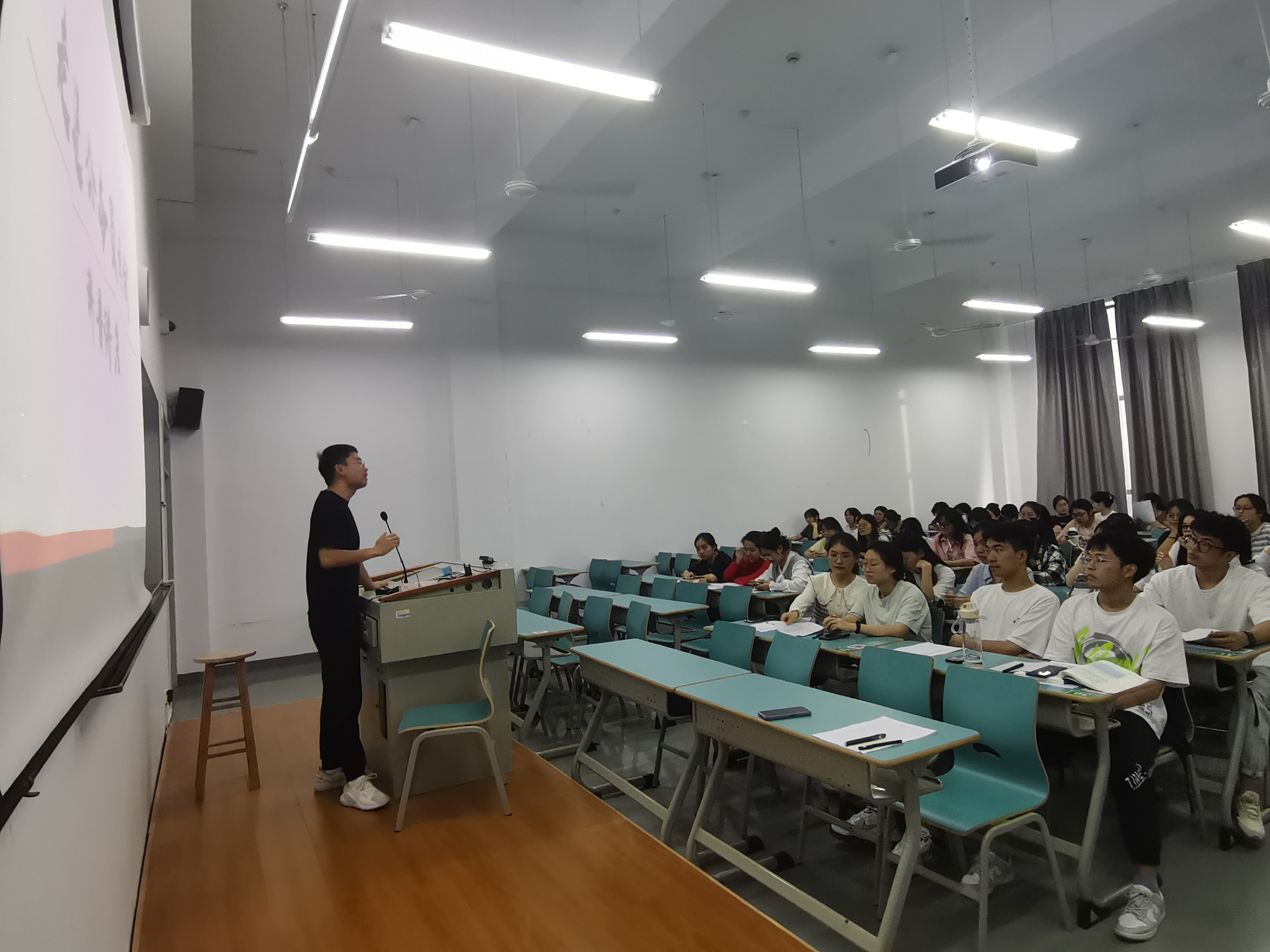 讲座伊始,朱老师以学业规划为话题向同学们发问,引发了同学们的兴趣与共鸣,她向同学们分析了未来的升学就业形势和近年来的职业方向选择趋势,介绍了近年来全国总体考研形势和相关报考信息,强调提前做好考研规划的重要性。她还从公务员考试、出国留学、就业等方面向同学们综合分析了不同职业发展道路,建议同学们从现阶段打牢学业基础,不断提高自身专业素养,进而提升自身的竞争力。