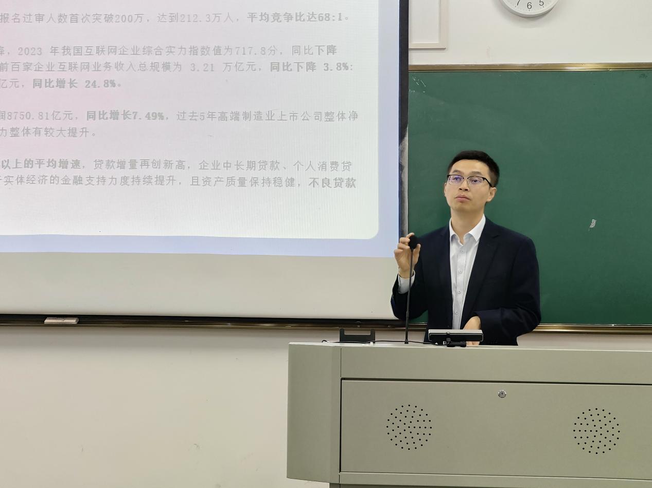芮小超老师从就业环境、招聘岗位现状和大学生就业指导三个方面为同学们深入讲解了就业择业的现状。宣讲会中,芮老师以自身招聘人员的经历为切入点,告诉同学们寻找工作岗位要明白该岗位是做什么的,因为很多同学对于自己的定位以及价值不明确。芮小超老师强调,要及时了解就业情况,了解行业薪酬现状以及行业薪资的平均水平。在为同学们进行就业指导时,还分享了部分人力资源部在招聘时注重的点,比如价值取向、证书要求、综合能力、校园经历、实习经历和性格气质,并且要学会做价值判断,以此提升自我。