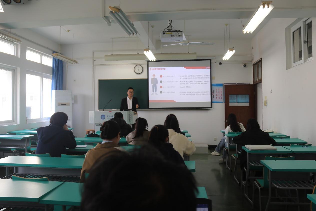 在本次讲座中,宋老师从公考优势、公考题型、公考类型、公考真相、公考建议等五个方面展开进行分享,向同学们展示了公考的形式与题型,这让同学们也对考公有了进一步的了解。其中,他特别强调了应届毕业生考公的优势,阐明了公职工作的突出特点,并对公务员考试行政职业能力测试和申论两个阶段需要掌握相关的知识和技能进行讲解,还介绍了包括国家公务员、地方公务员等常见的考试在内的考试类型、特点和要求。同时通过分享一些实例和经验,向同学们展示了公考的挑战和需要克服的困难,让他们对备考有了更为真实的认识。最后,宋老师给同学们提供了一些建议,如制定合理的学习计划、选择适合自己的备考方法等。这些建议让同学们能够明确自己的学习目标,并制定相应的行动计划,对增进同学们对公务员考试的形式和题型的了解起到重要作用。