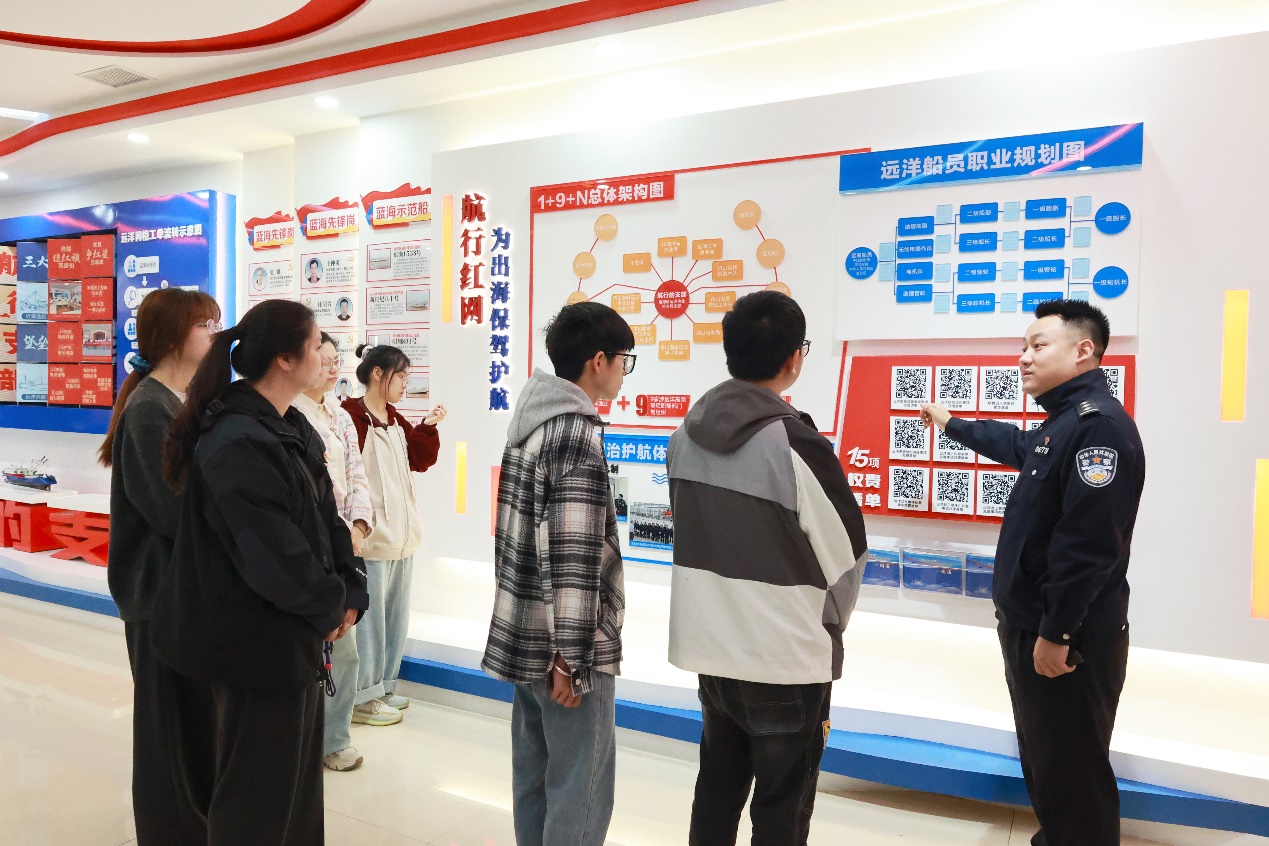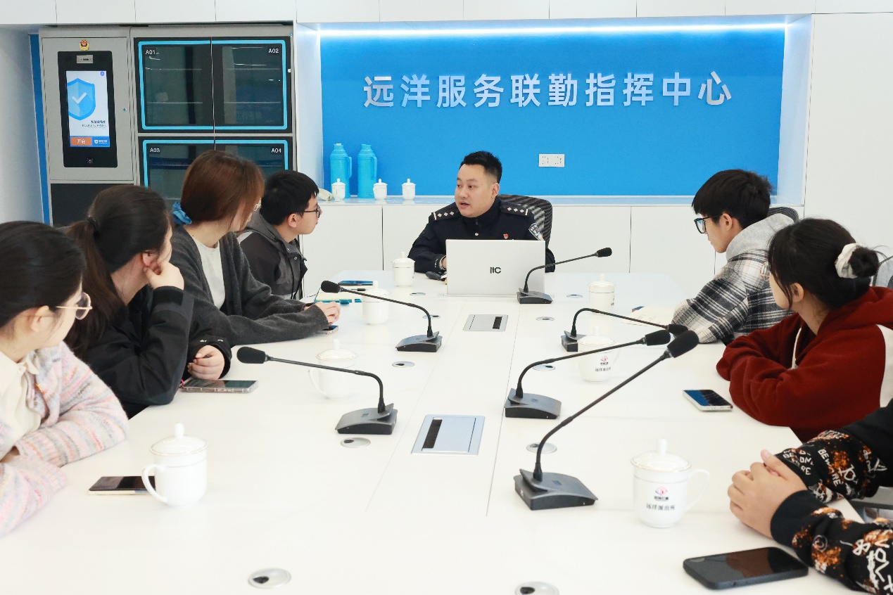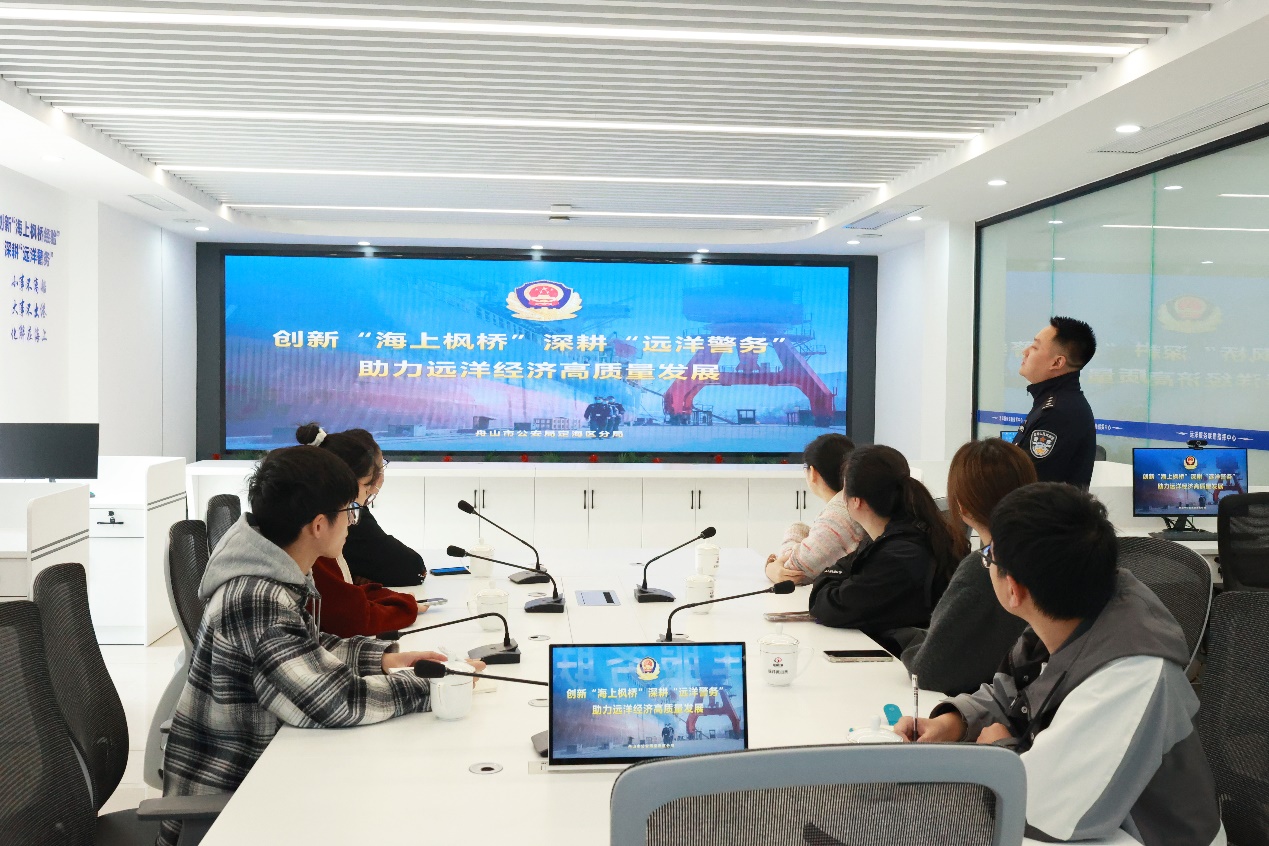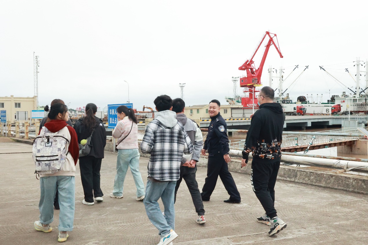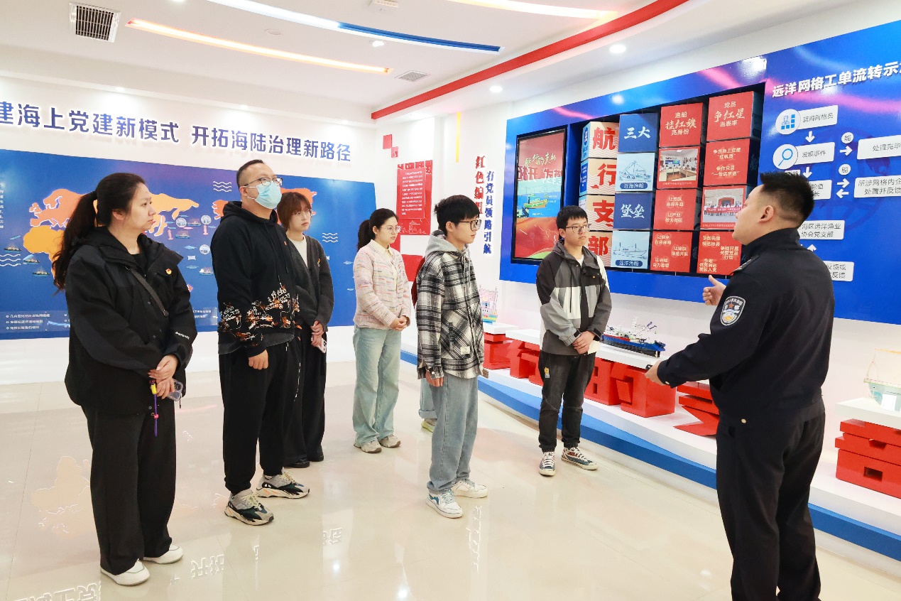 4月27日,黄色网站 团委负责人施辰阳再次带队前往基地,调研学习由舟山市独特的地理区位、深厚的海洋文化孕育滋养的海味十足的社会治安综合治理特色品牌——“海上枫桥经验”。基地派出所民警潘绍灿以《创新“海上枫桥”,深耕“远洋警务”,助力远洋经济高质量发展》为题,为全体师生深入介绍了当地公安机关立足发展海洋经济、建设海洋强国的战略高度,建立“海上老娘舅”队伍,打造“红帆示范”先锋船,开展海上纠纷化解、安全联防、抢险互助等经验做法。