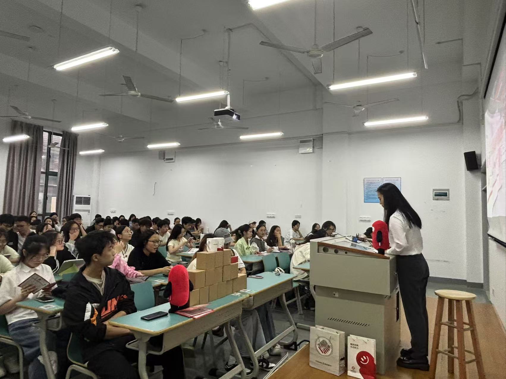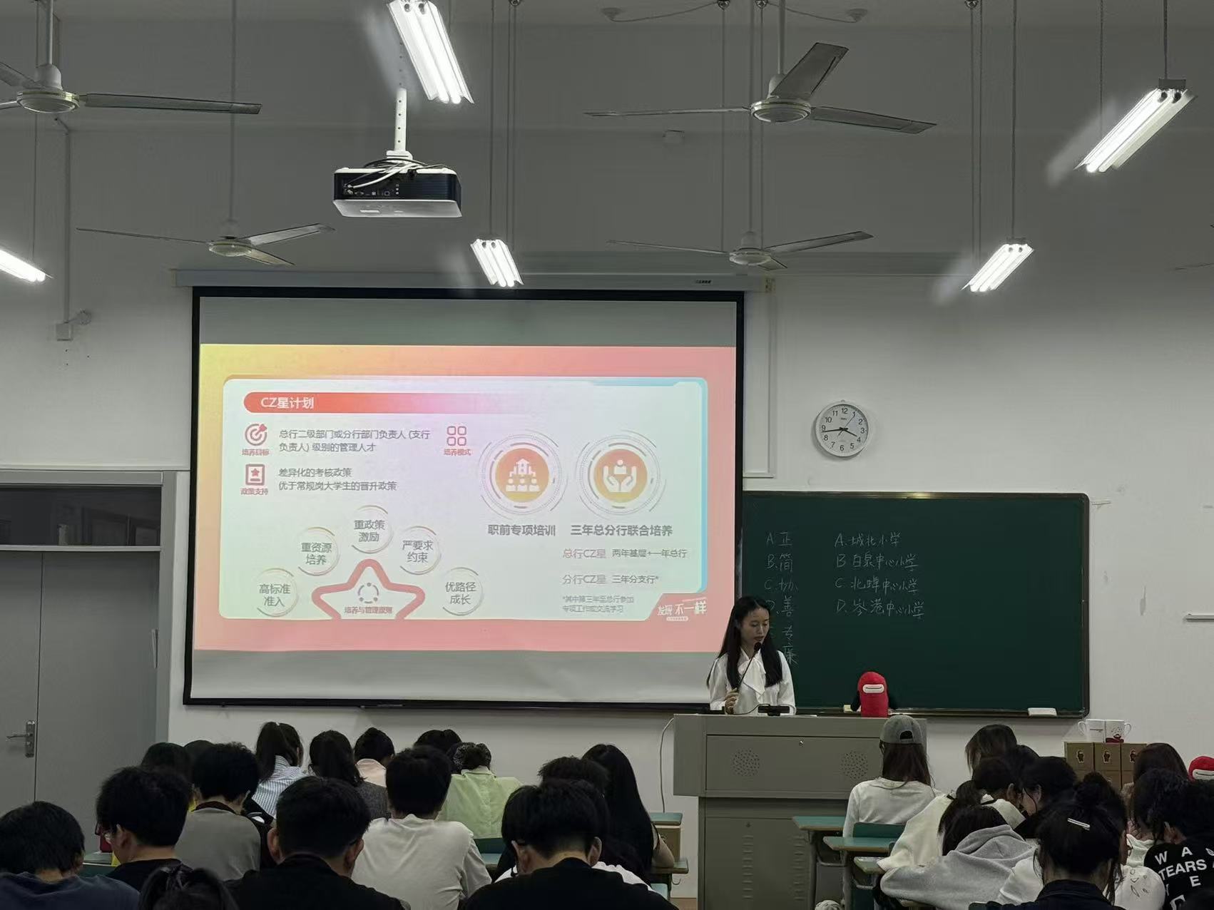 陆依宁老师以一段生动的视频展示了浙商银行的风采,视频内容涵盖了浙商银行的办公环境、现有资源、发展前景以及所获成就,让同学们感受到这家银行的创新活力和稳步发展的势头。接着,陆老师详细介绍了浙商银行推出的“cz星计划”,通过这一计划,浙商银行致力于打造“年轻人的银行”,为年轻一代提供更加便捷、灵活的金融服务。她通过提问的互动方式向同学们展示了该银行轻松愉快、充满活力的工作氛围,特别强调了该行在招聘中对于年轻人需求的重视。陆老师不仅介绍了岗位的要求和发展机会,还深入浅出地普及了基础金融知识。她通过实际案例提醒大家在面对贷款时要保持谨慎,避免因为缺乏金融意识而导致不必要的债务负担。她的讲解深入人心,鼓励大家在追逐青春梦想的同时,也要保持理性和责任感,让青春不负“债”,为未来的发展打下稳固的基础。