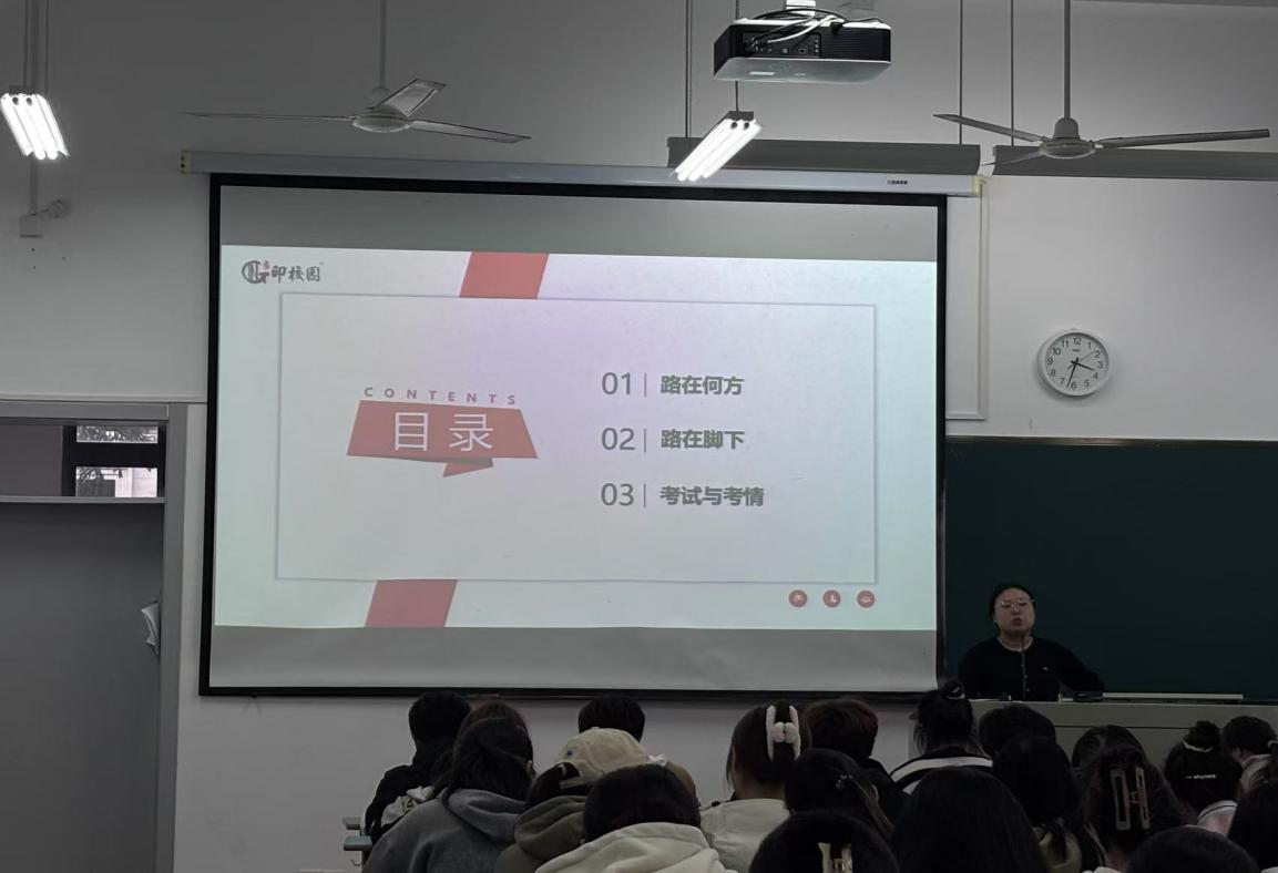 讲座伊始,范丽娜老师简要介绍了目前大学生常见的就业途径,并向大家展示了学校2021-2024届毕业生的择业选择,让同学们对近些年黄色网站 学生考公趋势有了大致了解。随后,范老师详细阐述了公务员工作的优势,包括稳定的收入、丰富的职业发展机会等。范老师从考试类型出发,向同学们阐述了国考、省考、选调与央国企等考试途径,还对考试流程与考试科目进行了解读,用往年真题让大家切身体验到考公难度与要求。最后,范老师建议同学们根据自身兴趣和职业规划选择适合的方向,在竞争激烈的公职考试中找到自己的定位。
