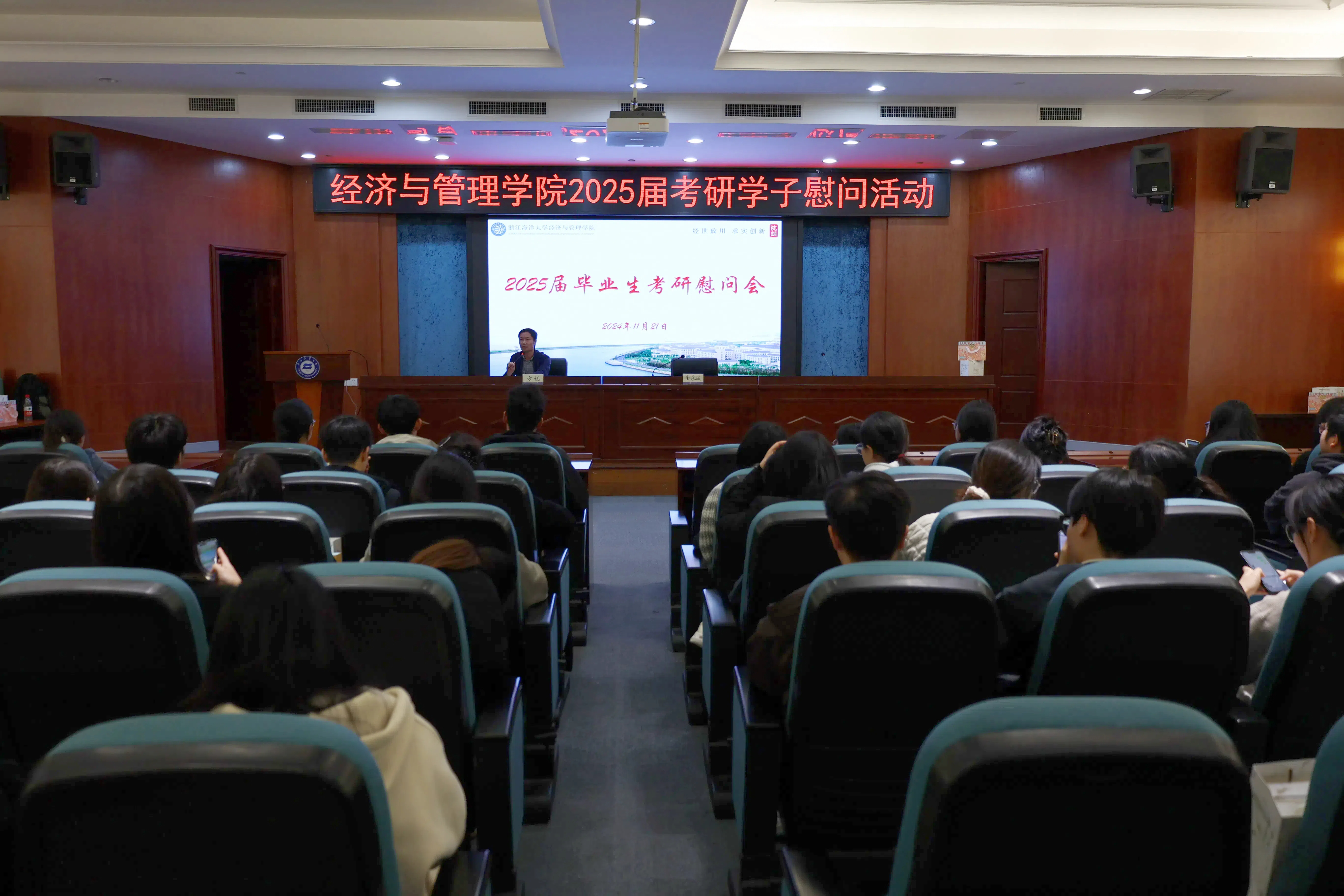 全永波院长向全体考研学子送上了真挚的祝福与殷切的期望。他强调,考研不仅仅是对专业知识和学习能力的检验,更是对个人心态、毅力和自我管理能力的全面考验。他鼓励同学们以积极乐观的心态面对挑战,科学制定复习计划,在高效学习的同时也要注意劳逸结合,加强营养,以最佳状态迎接考试。他提醒同学们,不论结果如何,这段备考经历都将成为人生的重要财富,他祝愿每一位考研学子都能取得理想的成绩。