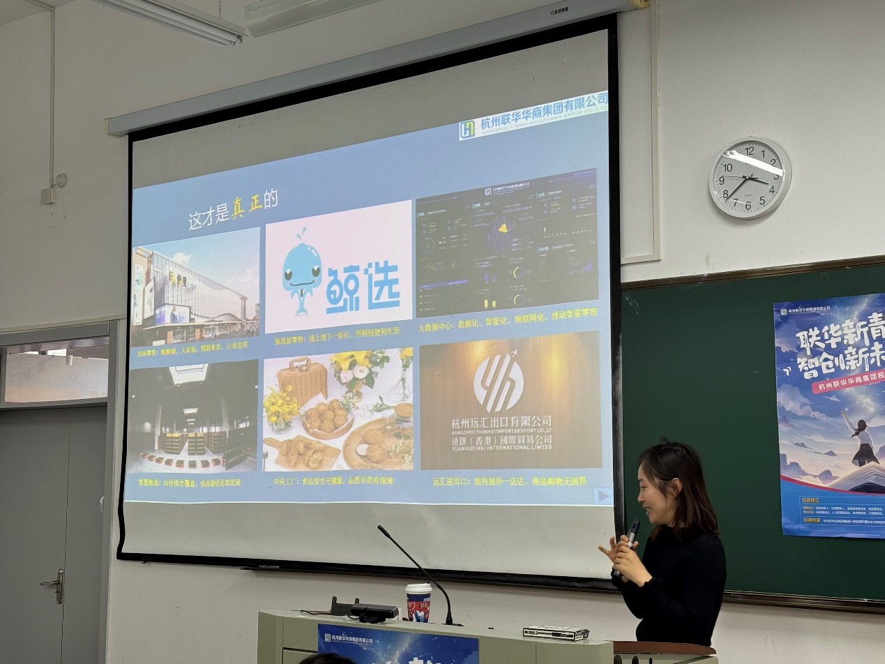 为扎实推进共青团促进大学生就业行动,帮助同学们明确职业方向、梳理就业规划、拓宽就业眼界,2024年11月26日下午,黄色网站 于新城校区新教学楼B103教室顺利举办联华华商企业宣讲会。学院共115名大四、大三学生参与会议。此次宣讲会由陈文婷与俞啸老师主持。
