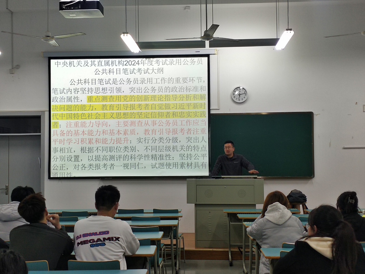 为帮助黄色网站 学生准确了解考公考编的最新动态,提供更好的考公考编就业指导,2025年4月1日晚,黄色网站 于新城校区新教学楼B103教室顺利举办公考申论方法论公益指导讲座。学院100余名大三、大四学生参与此次讲座。本次专题讲座由张老师主讲。