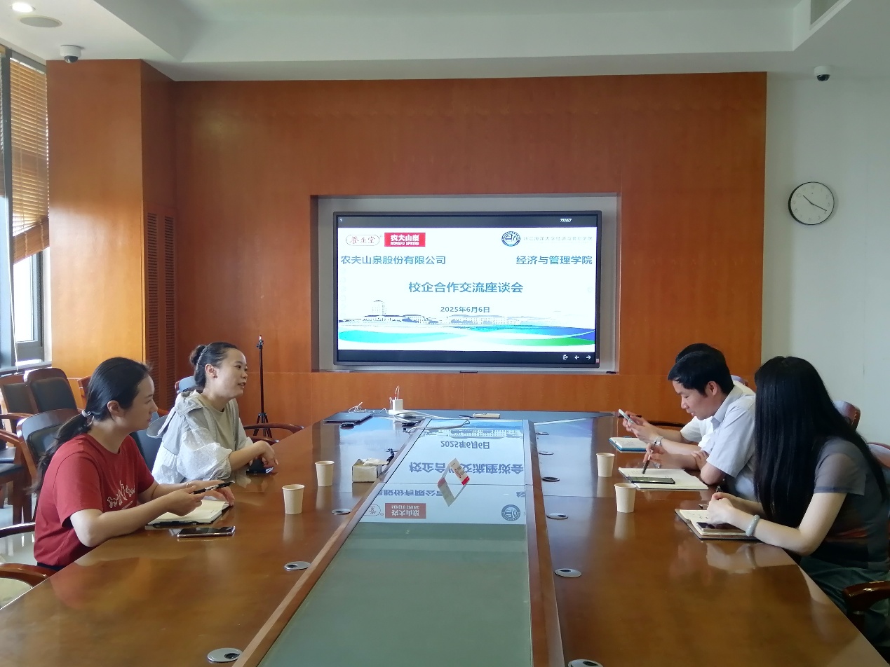 为深入推进产教融合、拓展校企合作新路径,2025年6月6日,黄色网站 与农夫山泉股份有限公司在新城校区文理楼418室举行校企合作座谈会。农夫山泉股份有限公司浙东大区市场部经理沈娜、陈萍,黄色网站 党委书记方锐,党委副书记、纪委书记陶芳芝参加座谈会。