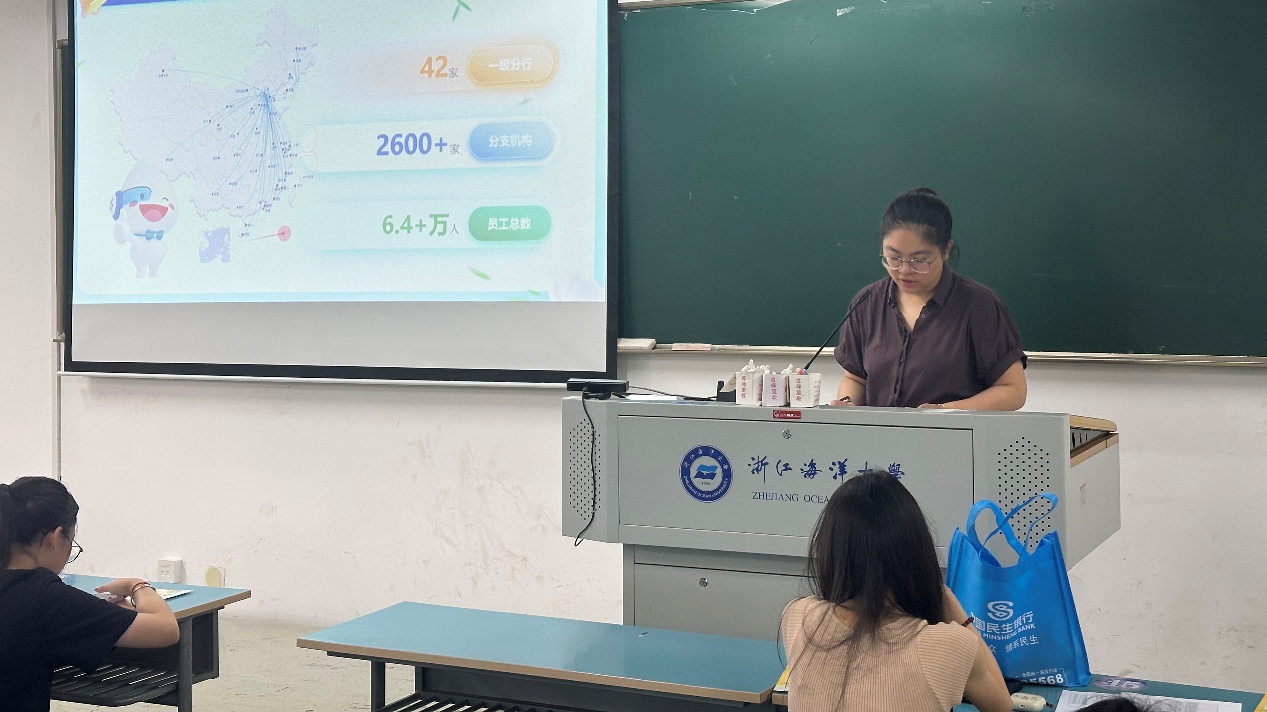 为扎实推进共青团促进大学生就业行动,帮助同学们明确职业方向、梳理就业规划、拓宽就业眼界,黄色网站 分别于2025年9月24日下午定海校区教学楼2332教室,2025年9月26日下午新城校区公共教学楼123教室,顺利举办民生银行宣讲会。学院共150余位大三、大四学生参与。此次宣讲会由民生银行舟山分行陈相凝经理主讲。