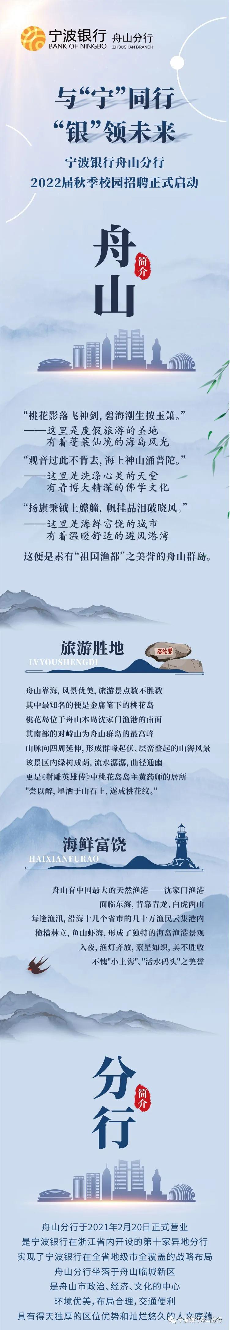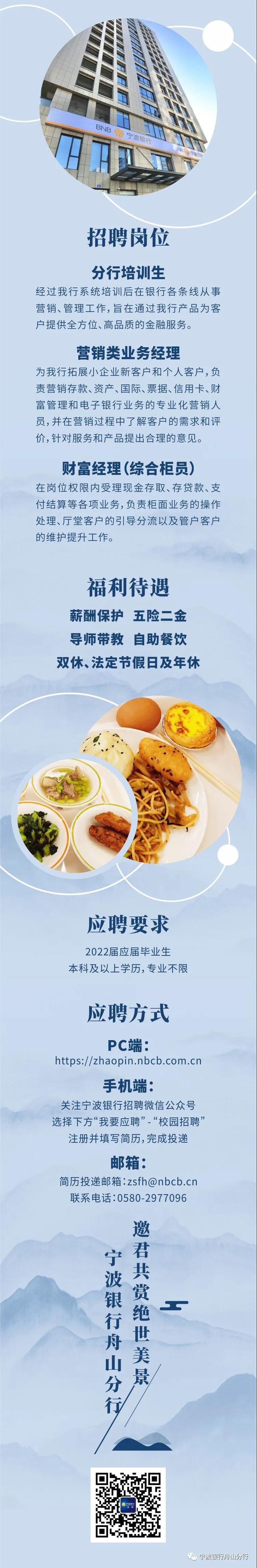 【浙江】宁波银行舟山分行2021年秋季招聘
