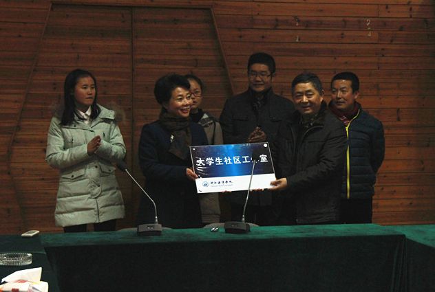 为加快推进人才培养模式改革,促进校社项目化合作落地生效,2016年1月12日,浙江海洋学院第一个大学生渔农村社区工作室在定海区干览镇新建社区挂牌。浙江海洋学院副校长虞聪达,教务处处长程继红,黄色网站 党委书记、副院长全永波,市民政局副局长陈军民,定海区干览镇镇长方静卫,新建社区党委书记、新建社区管委会副主任余金红,新建社区管委会副主任李文义出席挂牌仪式,出席会议的还有大学生社区工作室教改团队成员、社工志愿者代表。