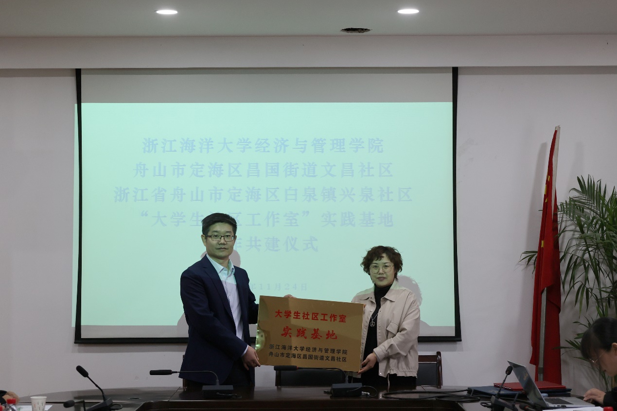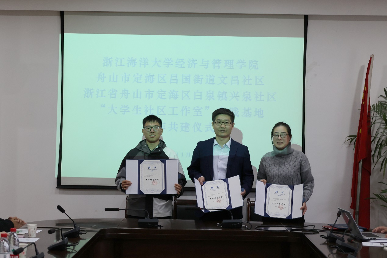 全永波院长同文昌社区王娜波书记、兴泉社区张高芳书记进行了“大学生社区工作室”实践基地签约、授牌仪式。双方围绕推动大学生社区志愿服务、提供思政课程教学实践条件、实施暑期校外社会综合实践项目等共建内容达成一致意见。会上还聘请两位社区书记作为“大学生社区工作室”实践导师,聘请黄色网站 院长全永波、副院长崔旺来、院公共管理系教师陈莉莉和院团委负责人施辰阳作为“大学生社区工作室”专业指导老师。