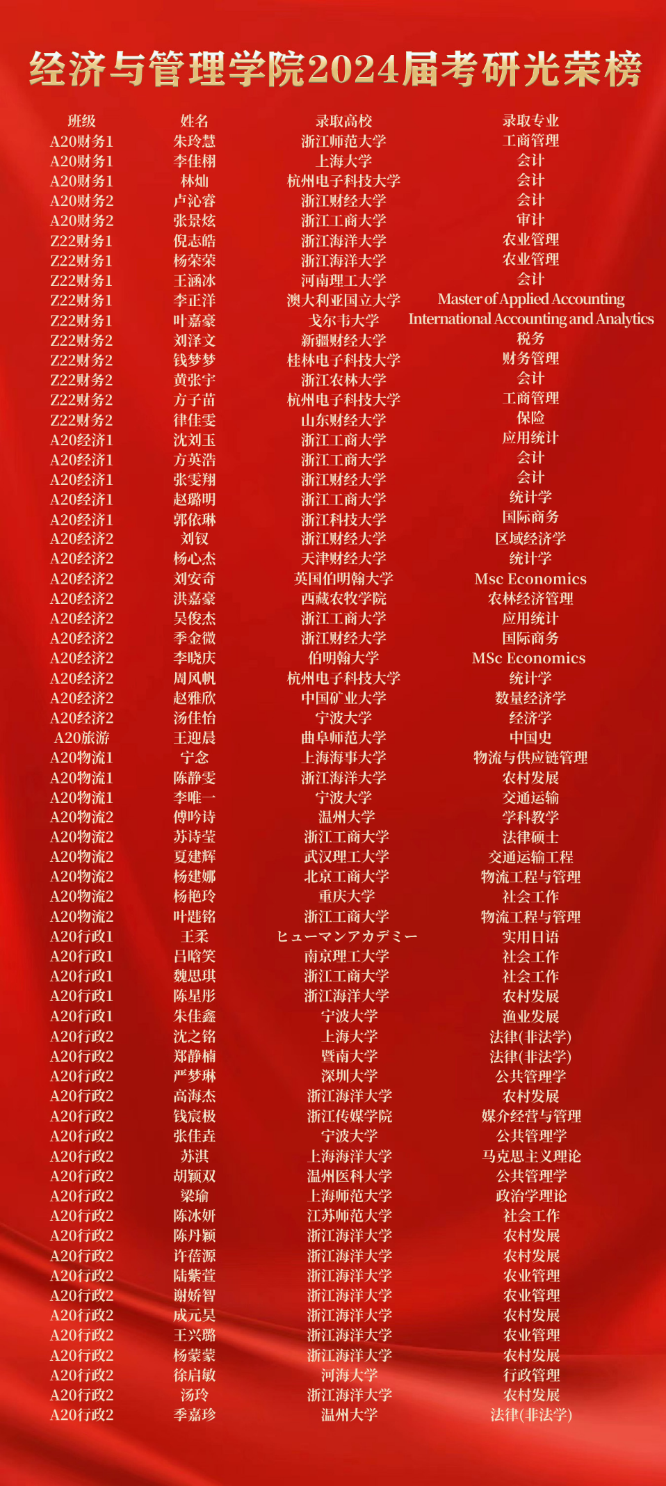 从各专业分布看,行政管理专业升学率为32.05%,经济学专业升学率为20%,物流管理专业升学率为19.57%,其中A20行政2班拟录取率达到51.28%。