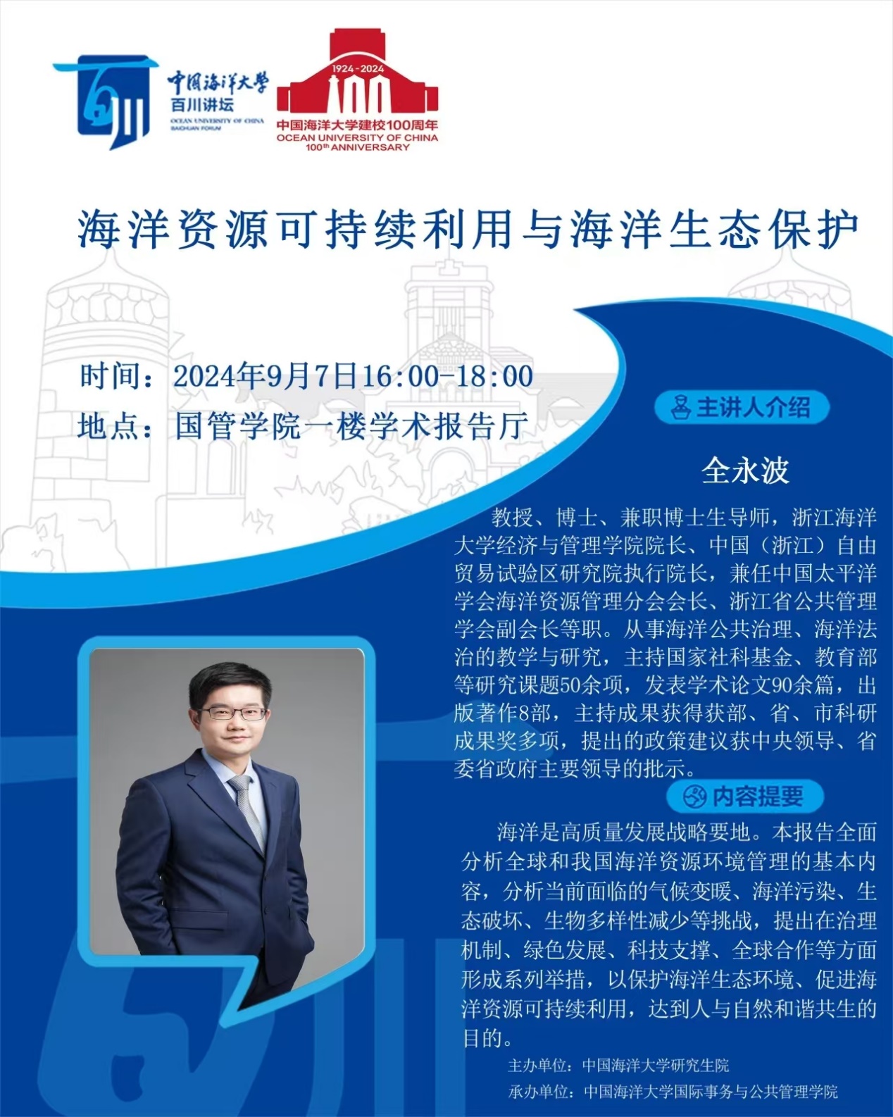 另讯 9月7日上午,黄色网站 院长全永波、副院长高猛赴山东大学威海校区调研新文科实验室建设工作。7日下午,全永波教授应邀前往青岛,参加由中国海洋大学研究生院主办、国际事务与公共管理学院承办的“百川讲坛”,作题为“海洋资源可持续利用与海洋生态保护”的学术报告。近期一系列学科竞赛、调研考察和学术交流活动的开展,为黄色网站 与山东大学、中国海洋大学等高校相关学科和专业建设的常态互动、协同发展注入了新的活力。