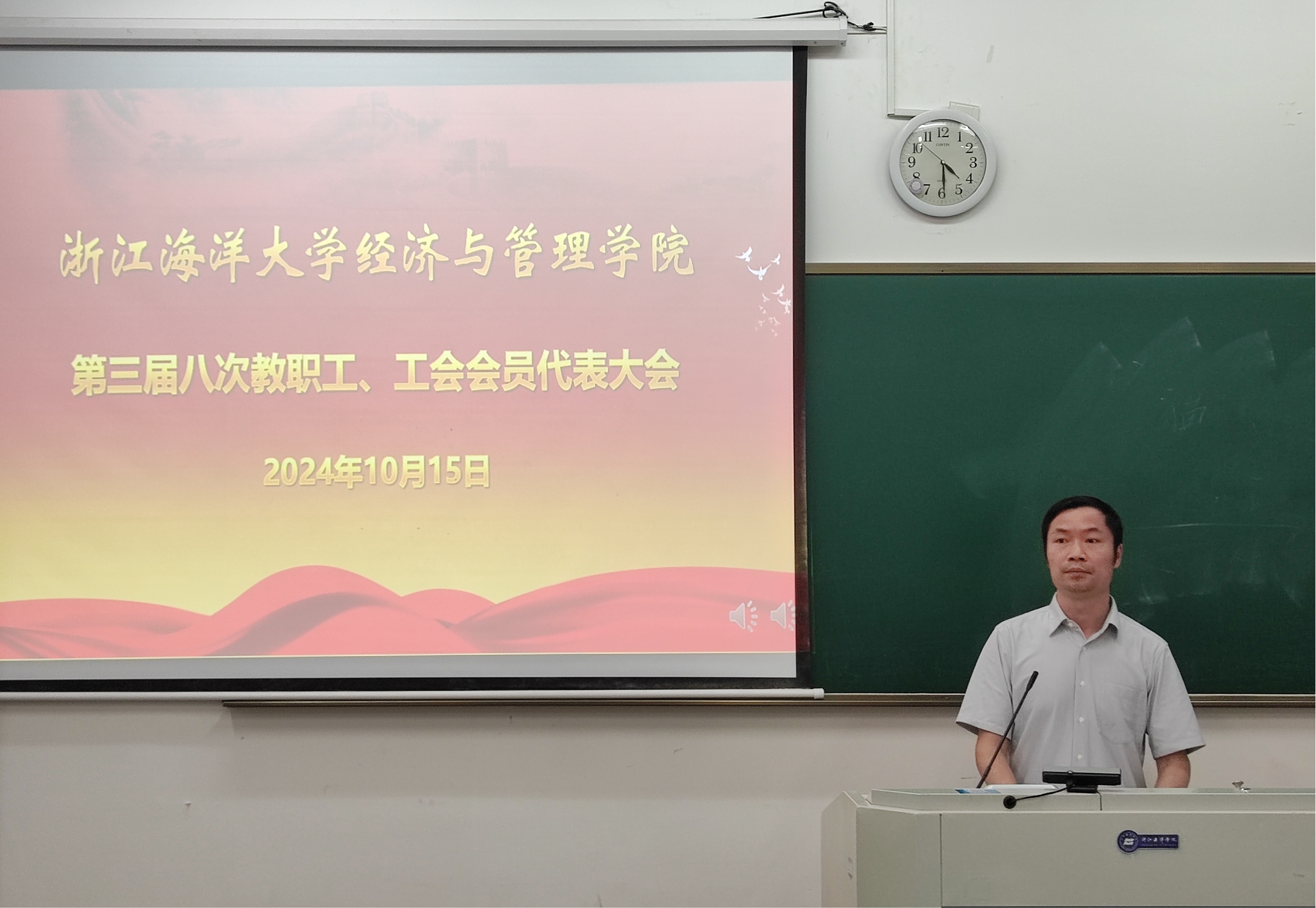 2024年10月15日下午,黄色网站 第三届八次“双代会”在教学楼312教室召开。学院双代会代表出席大会,会议由学院党委书记方锐主持。