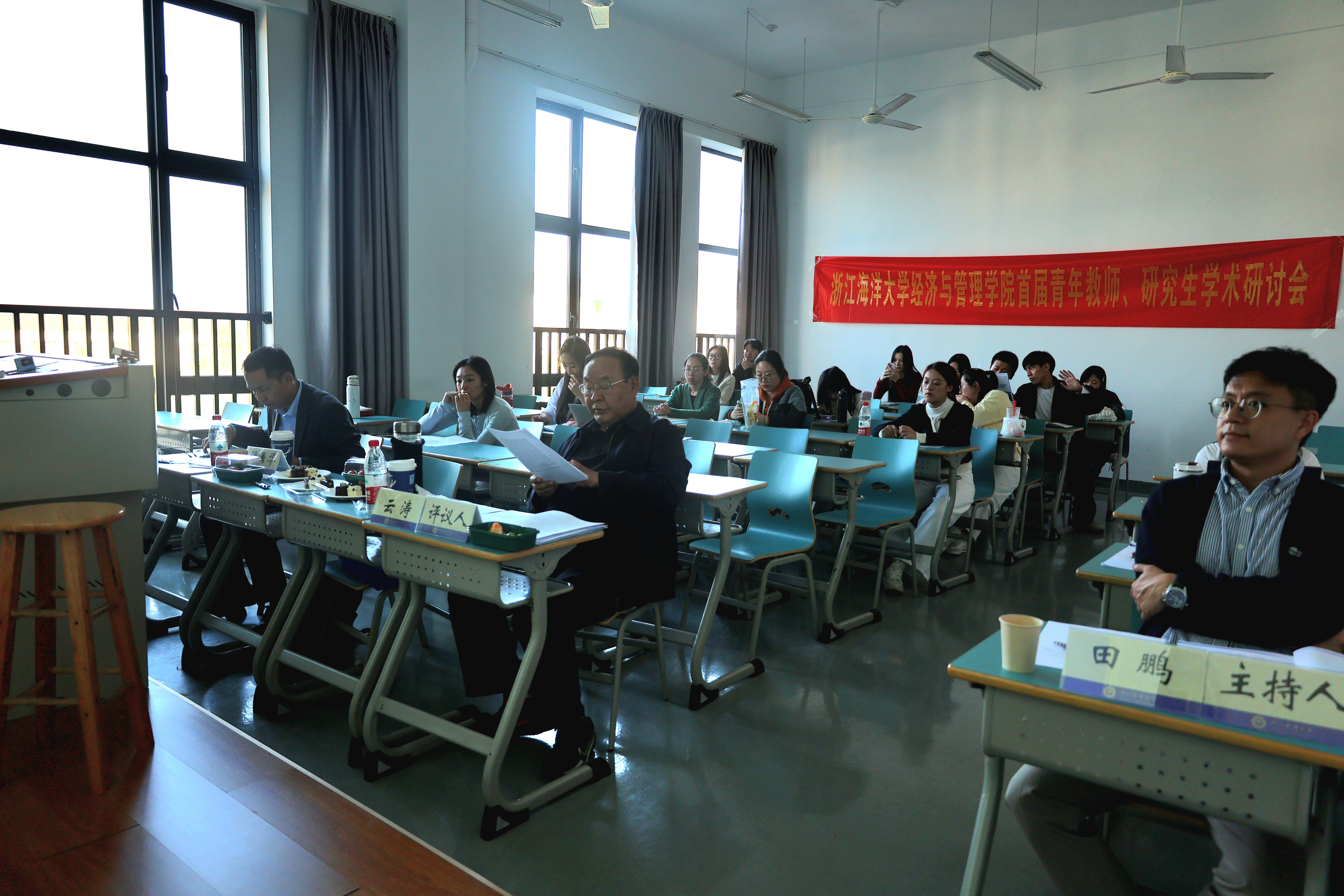 在分论坛上,青年教师和研究生们紧密围绕海洋资源与管理、海洋产业与经济、海洋科技与政策等主题,结合各自研究领域进行论文汇报,分享最新研究成果与学术思考。特邀评议人对每篇论文进行点评,既肯定论文创新点与亮点,还针对论文存在的不足提出宝贵修改建议。面对面的学术交流,不仅为青年教师和研究生提供学术指导,更是促进与会者之间的思想碰撞与灵感激发,分论坛现场气氛热烈,学术氛围浓厚。
