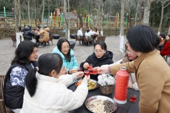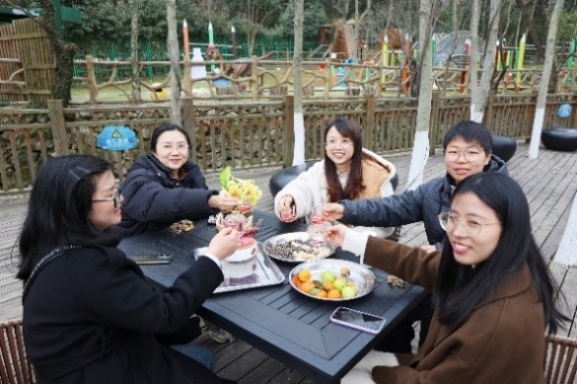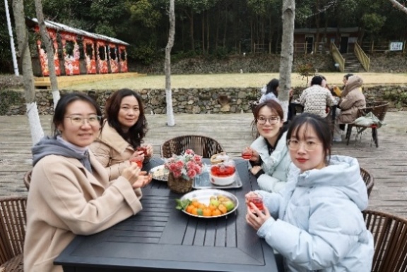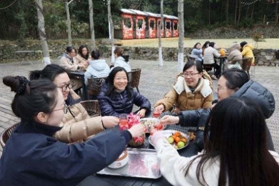 女教职工们还在这里进行了围炉煮茶,她们畅谈工作中的收获与挑战,回忆入职以来的难忘瞬间,分享生活中的趣事与感悟,探讨家庭教育的理念与方法,感叹“两山”理论、“双碳”目标在舟山的生动实践。老师们还自告奋勇提议唱歌,一时间,歌声此起彼伏,或婉转悠扬,或激情澎湃,大家沉浸其中,以歌传情,情谊在袅袅的茶香和跳动的音符中愈发深厚。
