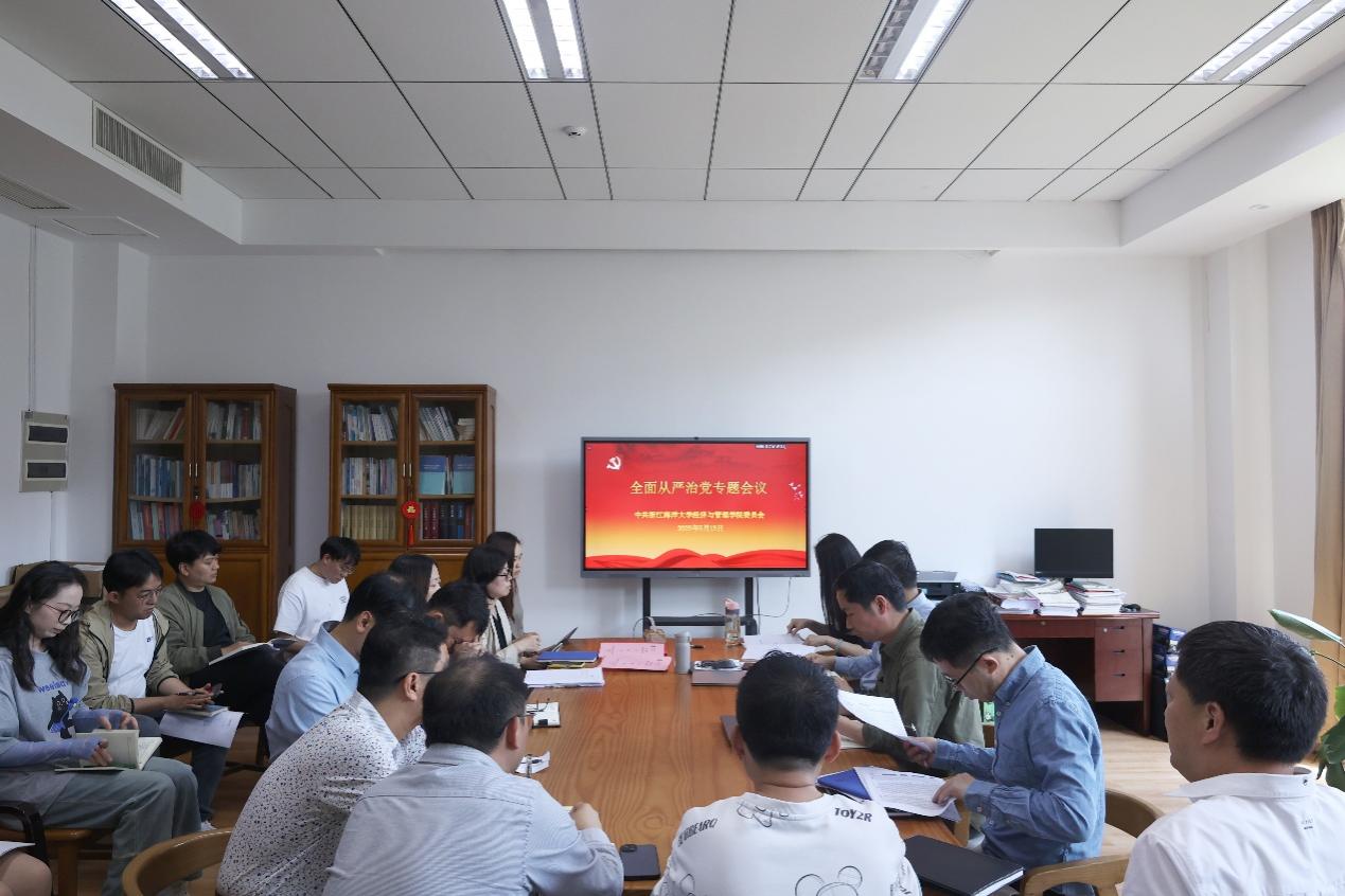 学院党委书记方锐围绕进一步压实管党治党责任提出明确要求。他强调,一要强化思想认识。要推动党建与业务深度融合,以经“海”先锋党建品牌为引领,在学术研究、立德树人、社会服务等方面持续发力,切实提升基层党组织凝聚力和战斗力。二要强化作风建设。要持之以恒贯彻落实中央八项规定及其实施细则精神,坚决抵制“四风”,筑牢拒腐防变思想防线,营造风清气正、干事创业的良好生态。三要强化责任担当。要压实全面从严治党主体责任和“一岗双责”,严格落实“三会一课”“主题党日”等制度,完善党员发展材料和工作台账,以高质量党建引领学院各项事业稳步推进。