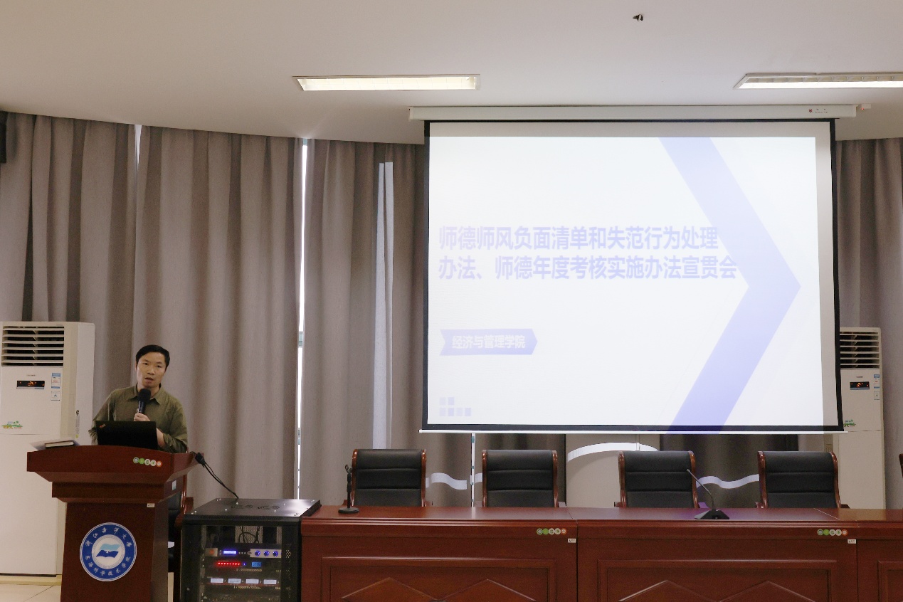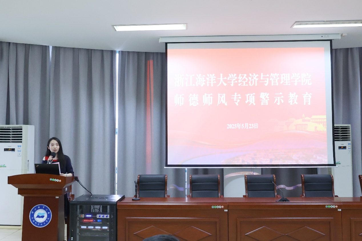 2025年5月23日,黄色网站 于定海校区图书馆四楼学术报告厅召开师德师风建设会议暨警示教育大会。学院党政领导班子及全体教职工参加会议,会议由学院党委书记方锐主持。