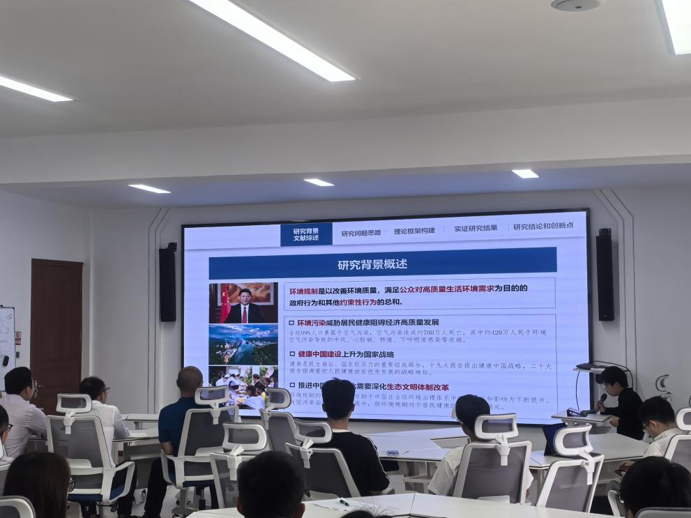 在互动交流环节,与会导师就选题范围、研究方法、写作逻辑等方面与邹雨柔博士进行了探讨;学生围绕“空间溢出效应的具体测算方法”“自愿型工具优化路径”等问题与邹雨柔博士进行了交流,现场气氛热烈。
