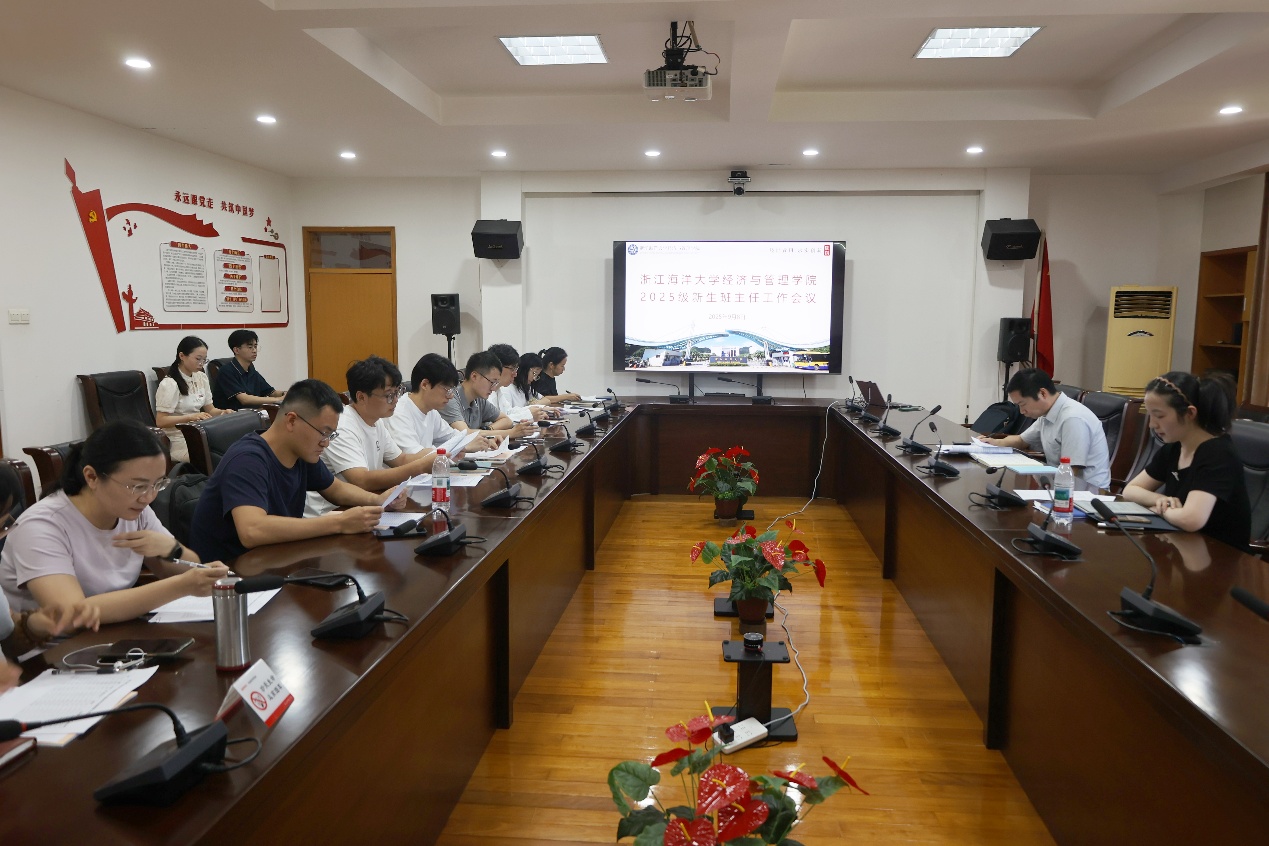 为做好迎新和始业教育工作,进一步提升新生班主任的业务能力,2025年9月8日,黄色网站 于定海校区二号会议室召开2025级本科新生班主任工作会议。学院党委书记方锐,党委副书记、纪委书记陶芳芝,各新生班级班主任和学工办全体辅导员参加会议。