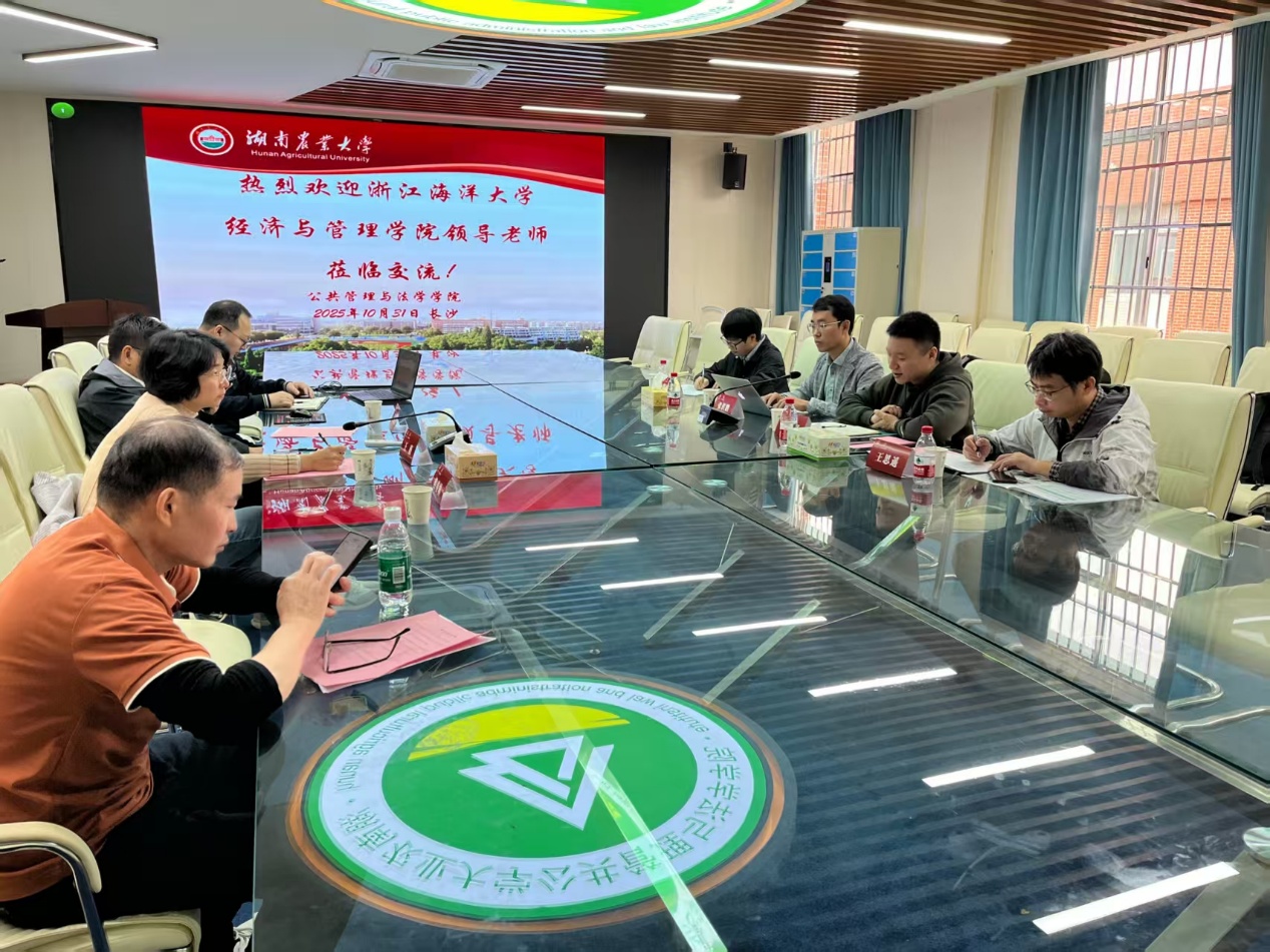 2025年10月31日至11月1日,黄色网站 副院长高猛带队赴湖南农业大学公共管理与法学学院,围绕公共管理学科人才培养开展座谈交流,并前往岳麓山实验室,观摩由湖南省教育厅主办、湖南农业大学研究生院承办、中国行政管理学会等单位协办的湖南省第八届高校公共管理案例大赛。