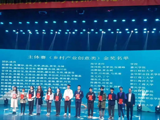 徐滔霖、曹郡文、张金萍、俞潇杰、赵宸枫、黄姝睿和张钰团队。其项目“鱼美人——激发小展乡村振兴内生动力的金钥匙”荣获金奖。