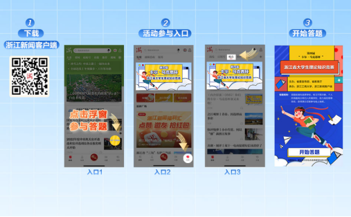 大赛期间,下载“浙江新闻”客户端,进入首页浮窗、“发现”频道或“观点”频道,找到“‘卡尔·马克思杯’预热答题赛”专题进行答题,答题前请先选择学校,个人所得最高分将归入所属学校,助力高校榜单排名。活动期间,每天答题次数不限,当天第一次答题满分即可获得一次抽奖机会。